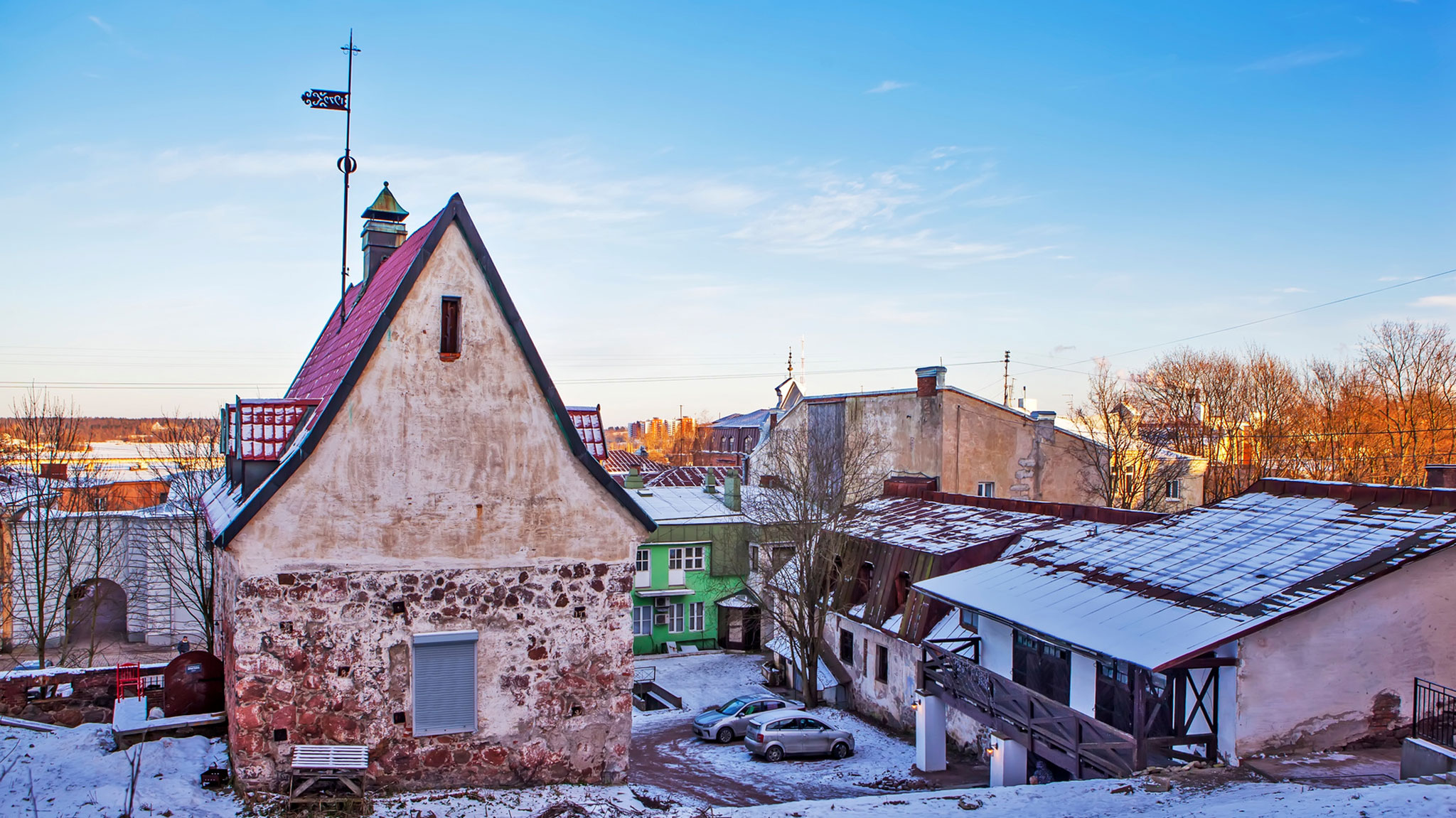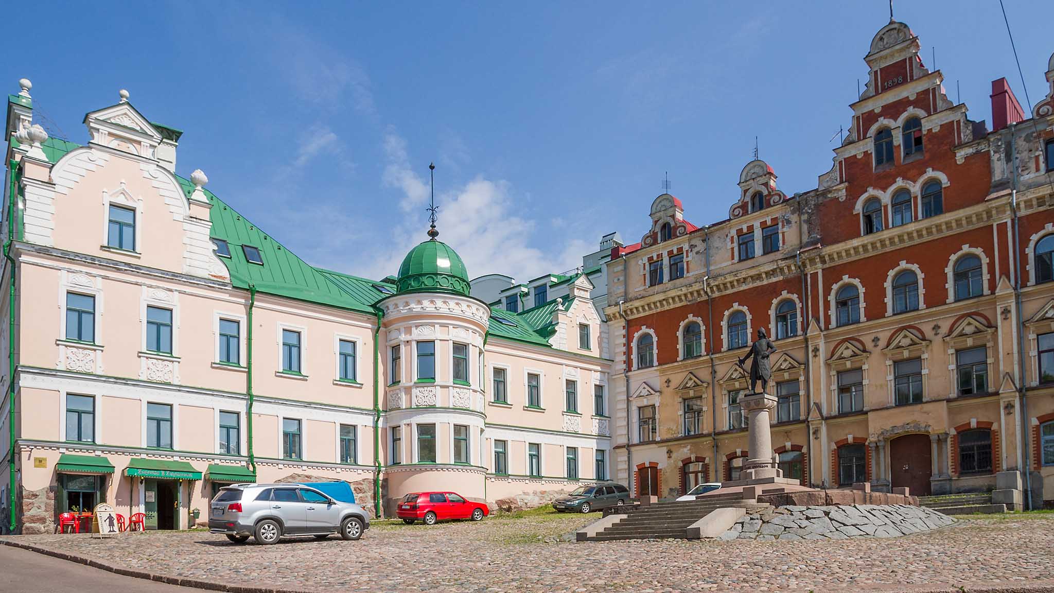 На пересечении улиц Крепостной и Северный Вал расположена небольшая площадь с памятником основателю Выборга Торгильсу Кнутссону. Ее обрамляют два жилых здания, сохранивших строгий шведский шарм. Первое из них изначально было городской ратушей и являет собой пример ганзейского стиля. Второе — трехэтажный особняк с полубашенкой, некогда принадлежавший купцу Юхану Веркуту. В XVII веке в здании ратуши заседали бургомистры, сейчас там жилые квартиры. На первом этаже расположено уютное кафе, где можно угоститься фирменными выборгскими кренделями.