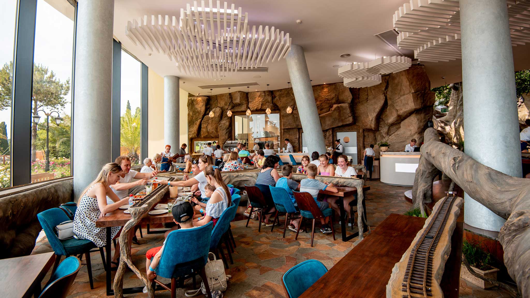 На территории парка находится ресторан «Форестино» со специальным детским меню, а также кафе «Пеликан» с закусками и прохладительными напитками.