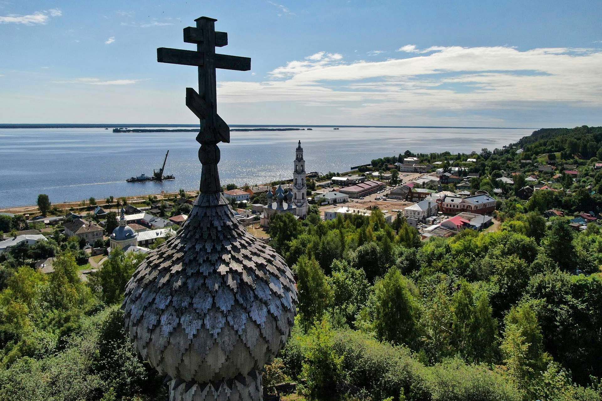 Из всех городов Ивановской области Юрьевец самый древний. Он известен как родина нескольких гениев: режиссера Андрея Тарковского, создателя советских киносказок Александра Роу и архитекторов-конструктивистов братьев Весниных. А еще про Юрьевец говорят, что это город, остановивший море. В 1950-х годах из-за строительства Горьковского водохранилища он мог полностью уйти под воду. Но для его спасения возвели трехкилометровую дамбу.