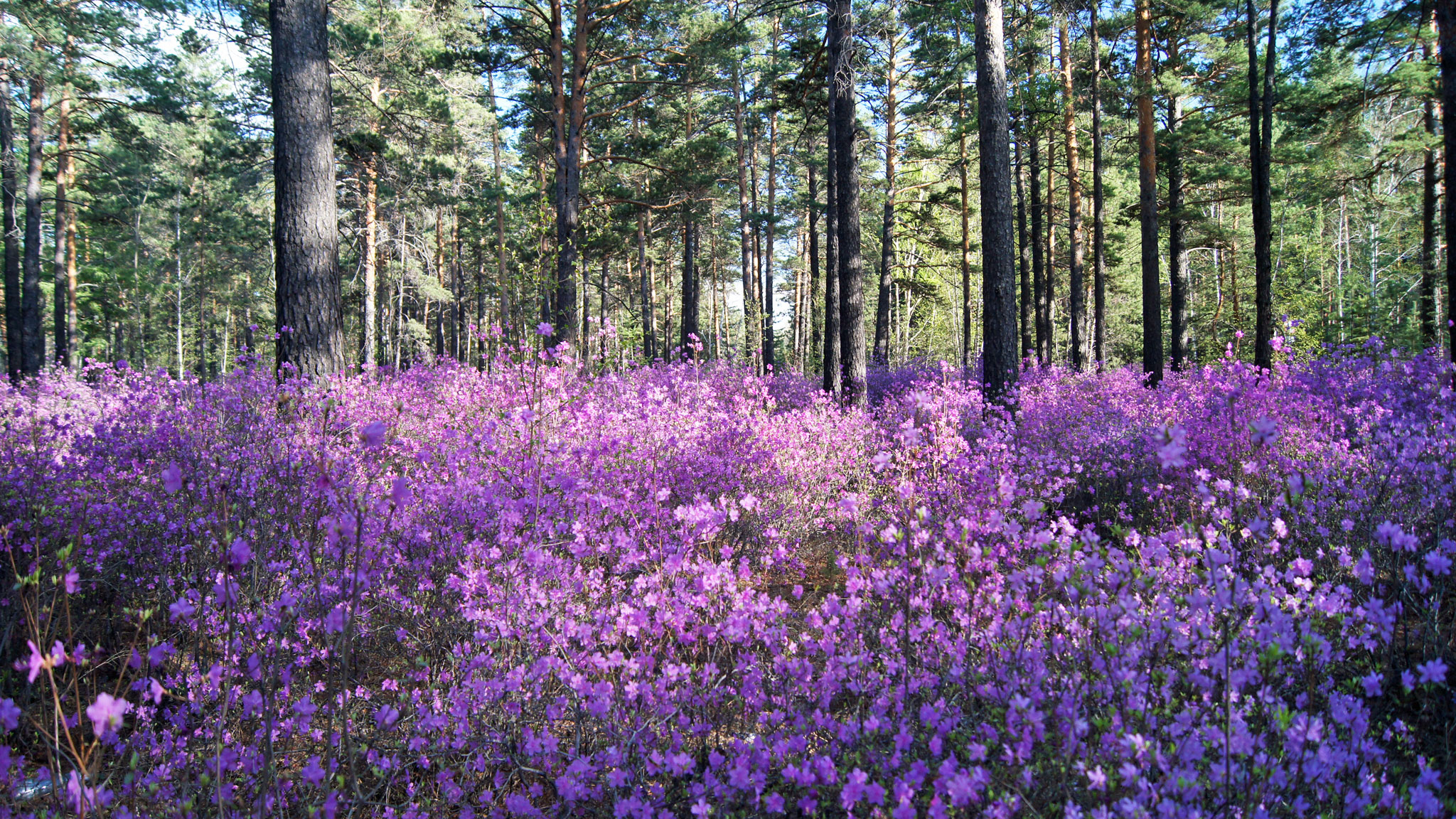 О растениях Забайкальского края можно говорить бесконечно. В конце апреля — начале мая склоны Яблонового хребта и Станового нагорья покрываются фиолетово-розовыми тонами. Это зацветает багульник. Еще до того, как распускаются деревья, он преображает горы и говорит о том, что долгожданная весна пришла.