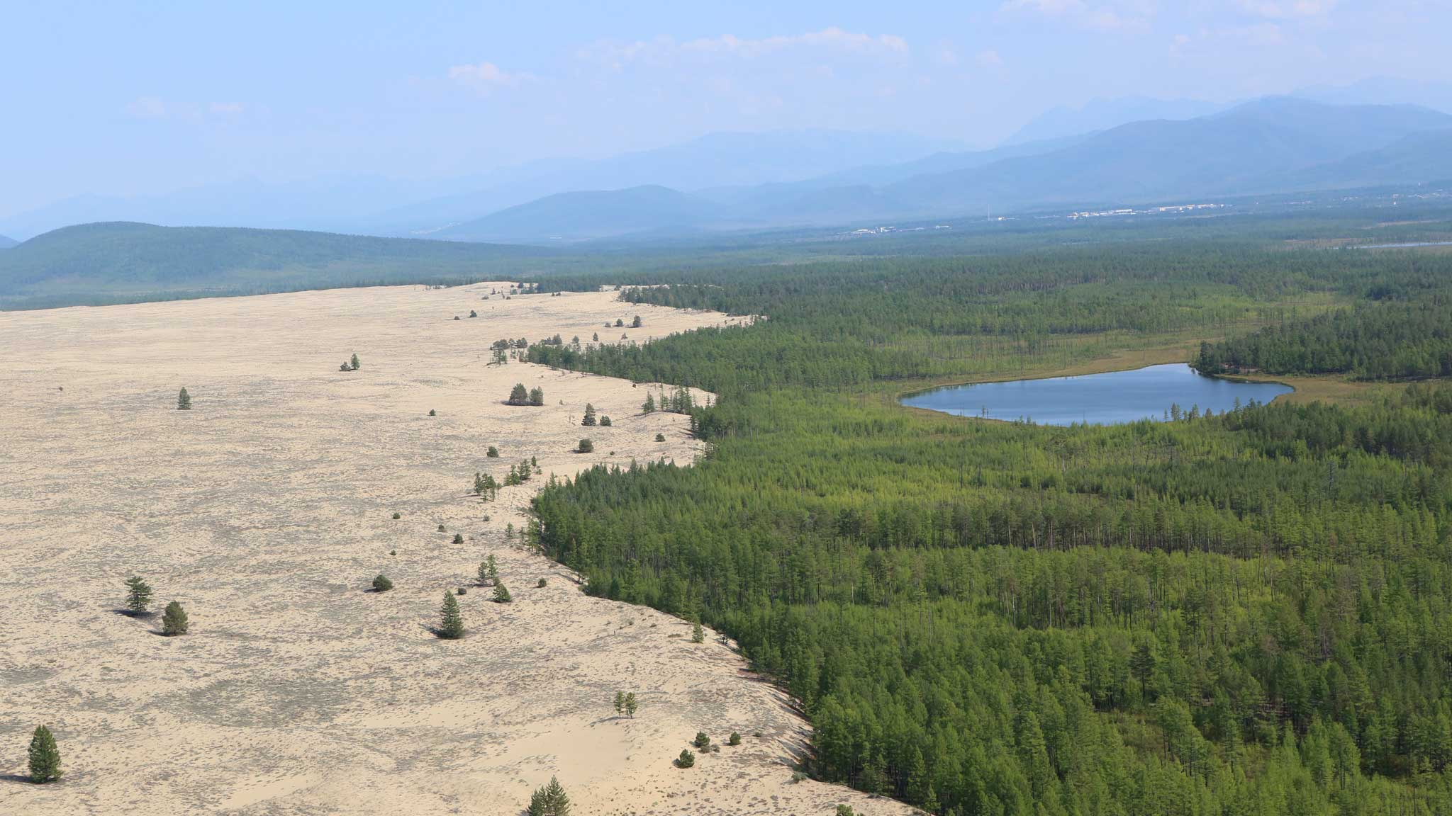 Но в этой пустыне есть свои, забайкальские, особенности: это резкий переход от зеленого леса к желтому песку, соседство теплых барханов с холодными наледями, а в редких оазисах царствуют не пальмы, а ели и лиственницы. На окраине пустыни есть озерцо с чистейшей и вкуснейшей водой.