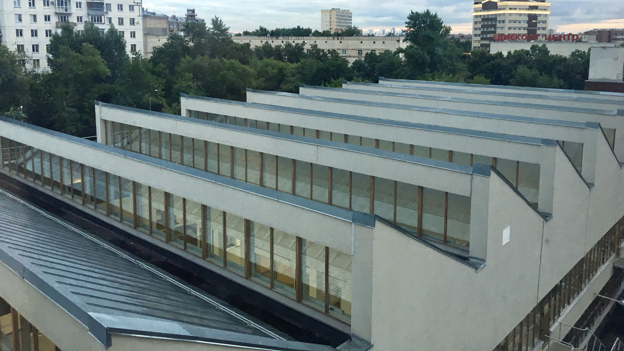 Второй принцип заключается в создании функциональной крыши-террасы. Наш архитектор и сам хотел, чтобы сверху занимались спортом студенты. Но что-то не задалось и функциональной крыша так и не стала.