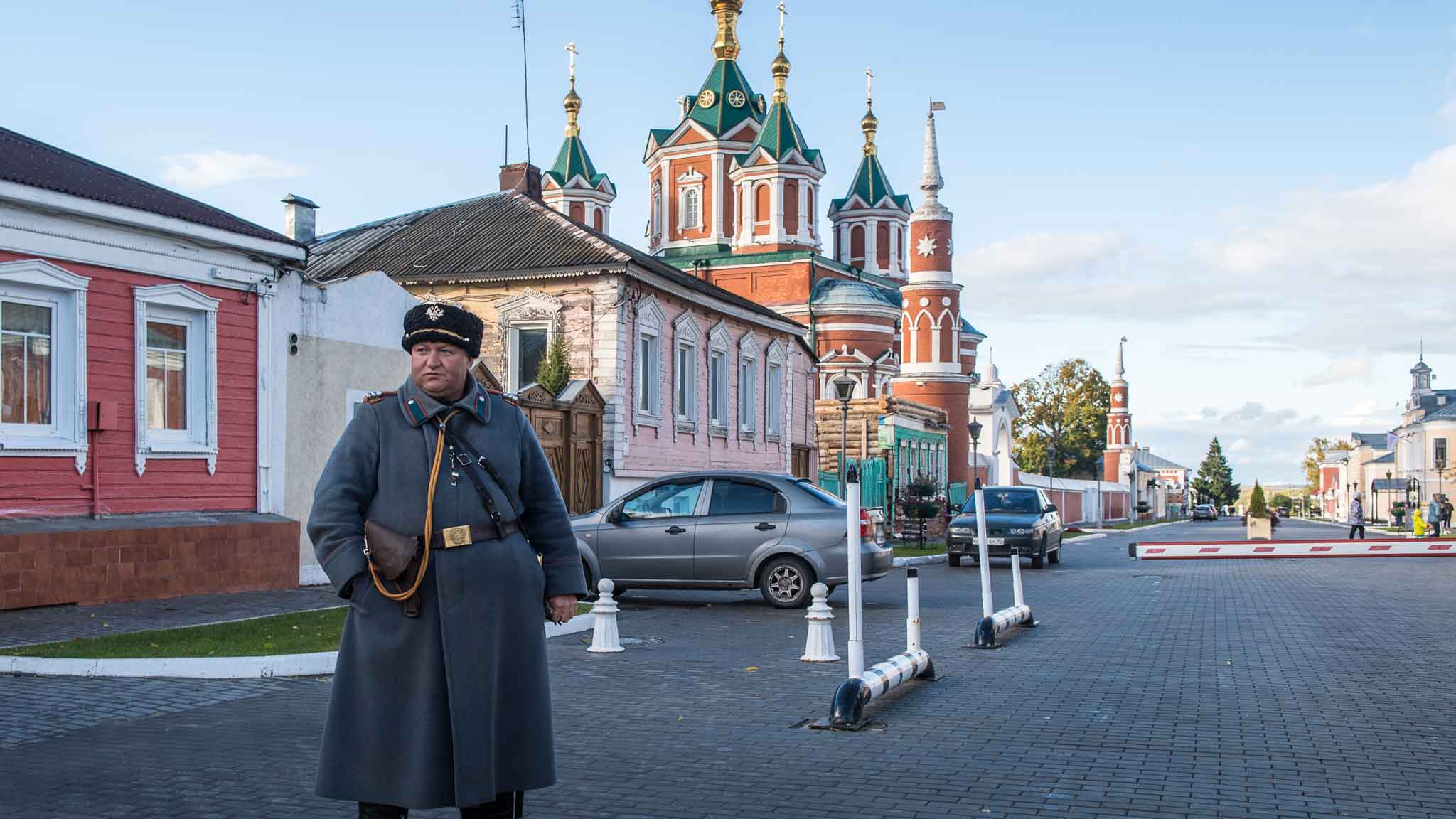 По пути в Зарайск заехали в Коломну (можно доехать на электричке с Казанского вокзала). Город-праздник, город- слоеная пастила. Остатки высоких крепостных стен и башен ярко-красного кирпича на берегу Коломенки. Исторические храмы. Пешеходный центр, где стоят разноцветные домики с резными наличниками. Здесь будто век назад отматываешь. Погружения в неспешную старину добавляет мордатый городовой, который встречает туристов у шлагбаума на улице Лажечникова.