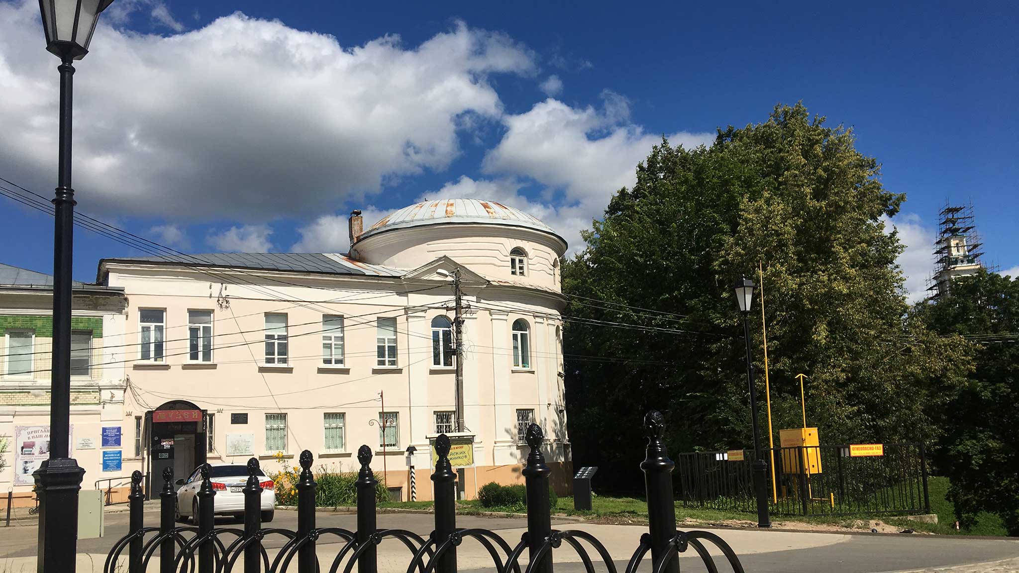 В особняке 18 века расположились библиотека и краеведческий музей. Внутри строго: лестничная площадка замотана цепью, на табуреточке — тазик с антисептиком, позолоченный колокольчик и записка, гласящая, что желающие войти в музей должны обработать руки антисептиком и позвонить. На звон вышла сотрудница. Придирчиво осмотрев меня и измерив температуру, пропустила внутрь.