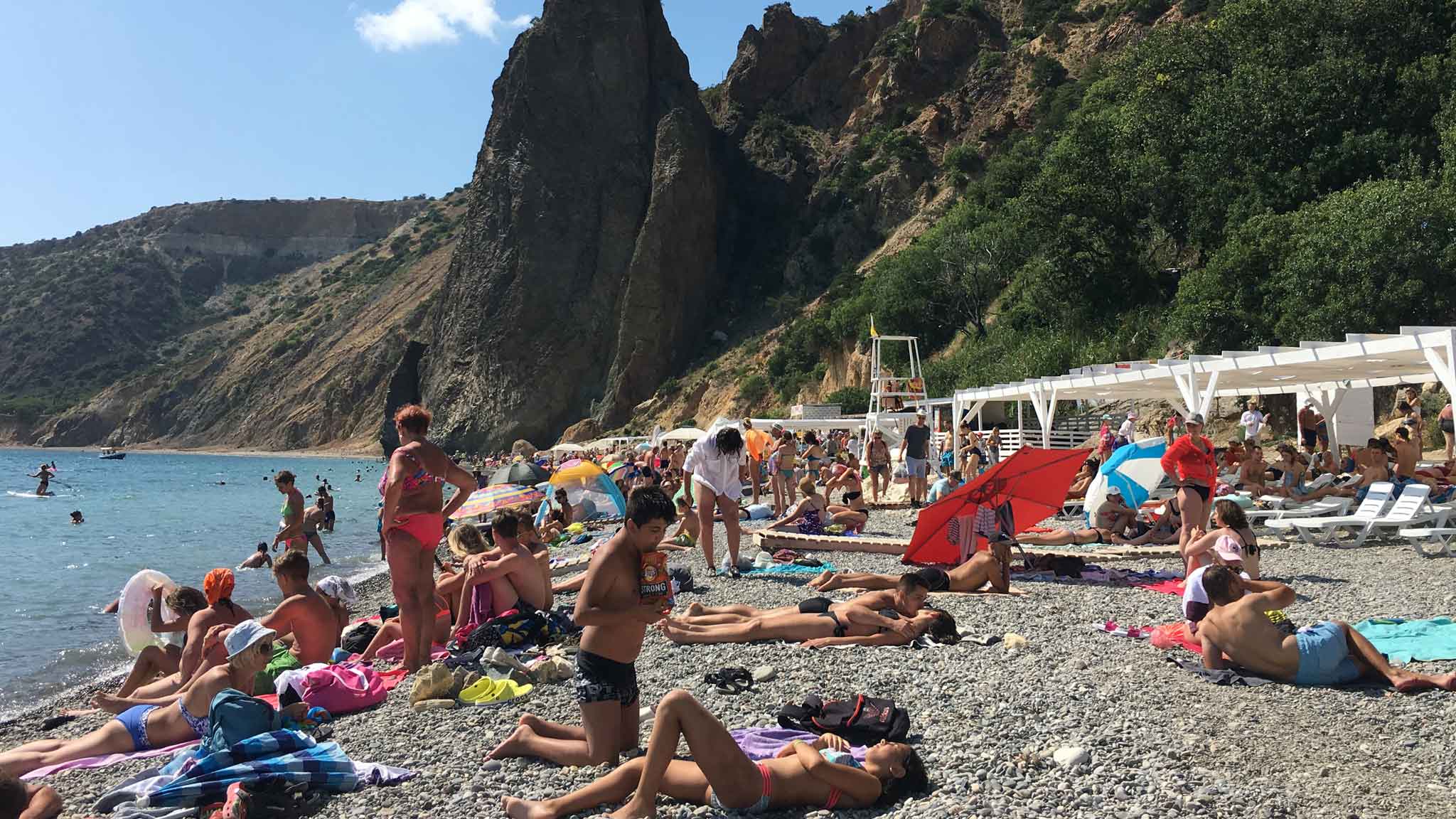 Для неподготовленных людей не то что подняться — спуститься сложно. В отличие от «Омеги» и Учкуевки на Яшмовом пляже совсем плохо с едой. А поход в туалет стоит целых 50 рублей. Ну вы понимаете, что сортирщик сидит практически без дела.