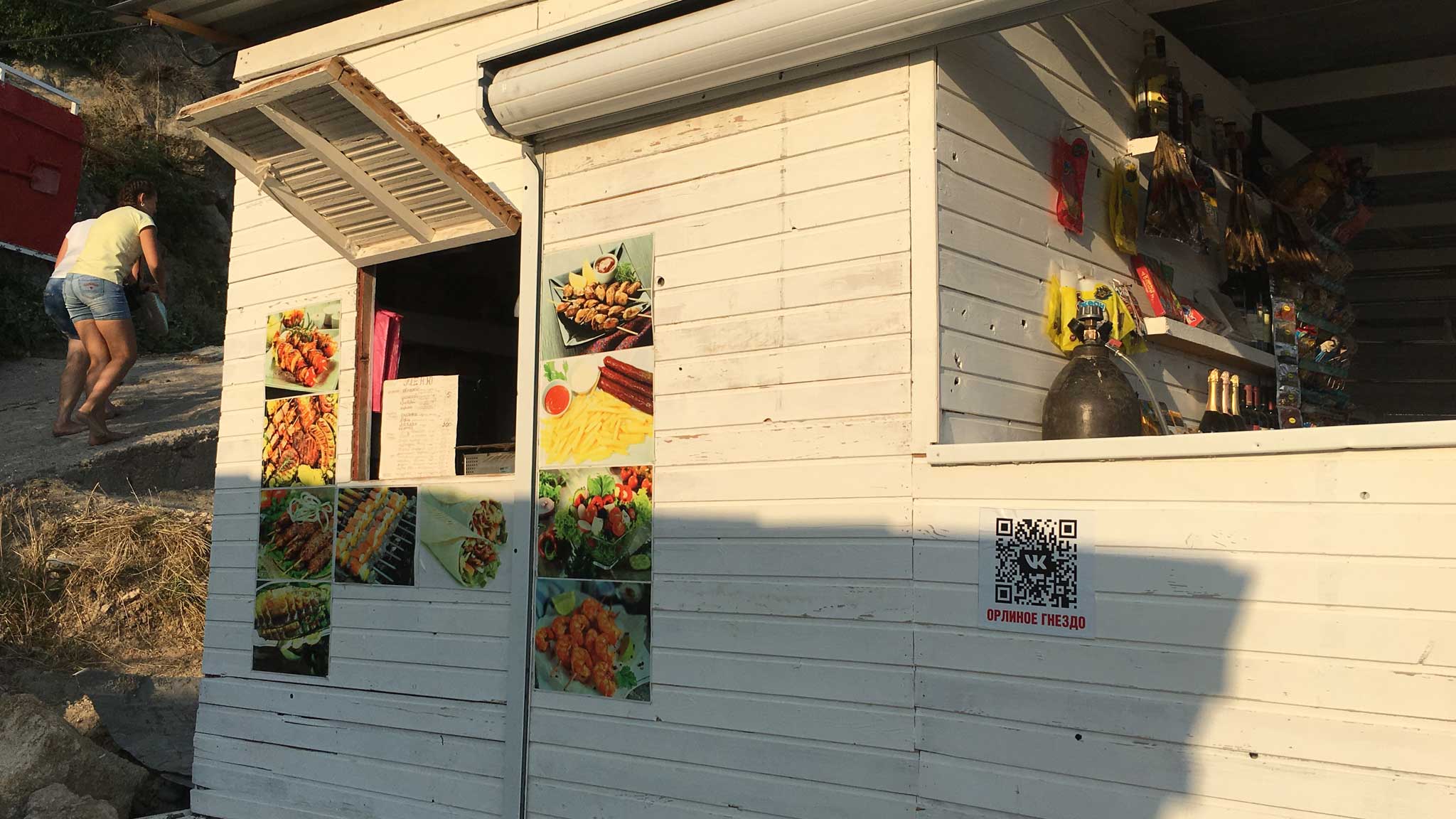 Помимо кафе и закусочных, открыты гастрономы, цены в которых выше обычных магазинных в 1,5 раза. Но, как говорится, жрать захочешь — раскошелишься. Чего не скажешь о туалетах. Понятно, что при таких ценах многие отдыхающие справляют нужду в море.