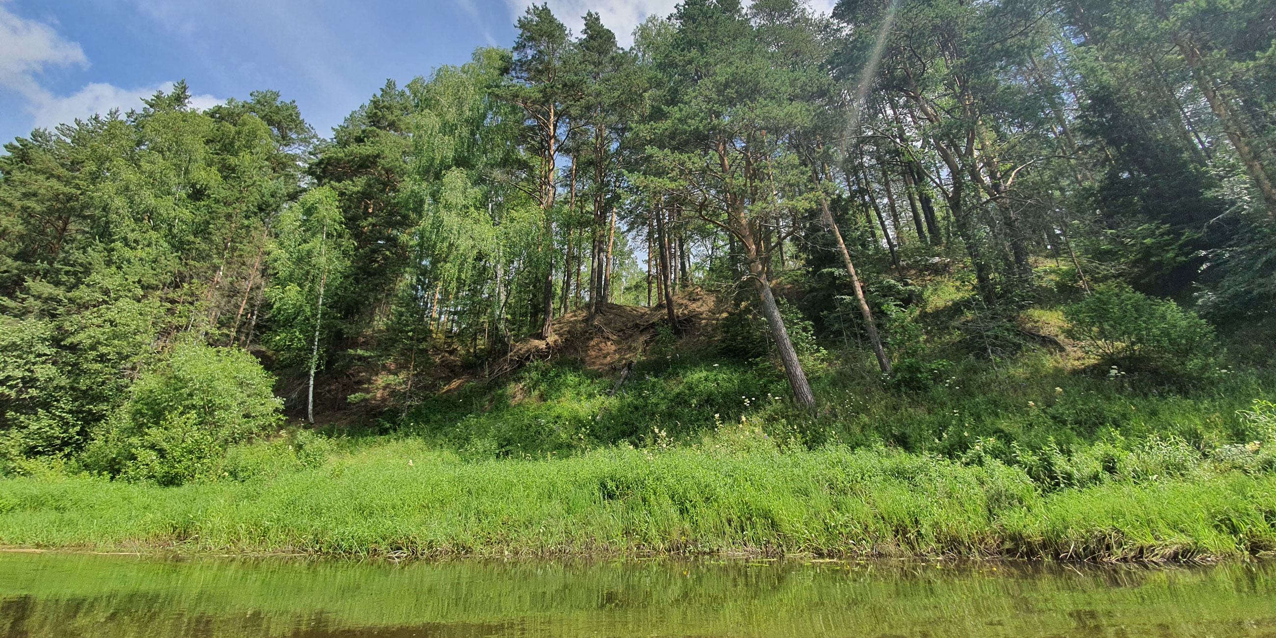 Идеальный сплав, если вы идете с детьми или неопытными товарищами. Ибо на этом протяжении река не только удивительно красива — с богатыми лесами и живописными обрывами, но и не менее удивительно безопасна. Глубина Нерли колеблется от по колено, до — редко — по плечи.