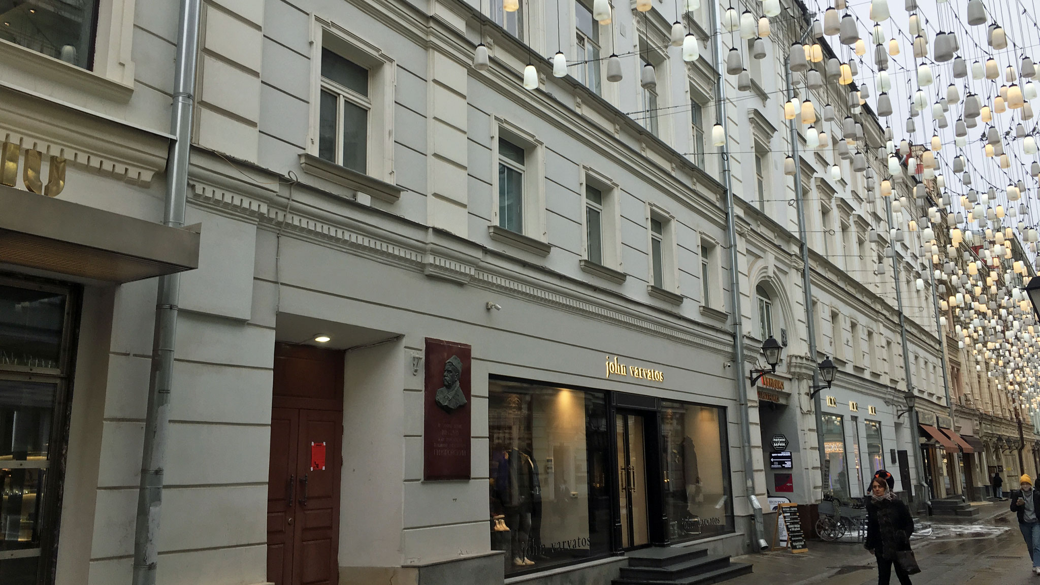 Пока я фотографировал оба здания, заметил, как мимо проходящие барышни томно вздыхают, глядя на них. Но, очевидно, не потому, что в 11-м доме проживал Муса Джалиль, а в 9-м — дядя Гиляй. А потому, что первые этажи этих строений заняты теперь элитными магазинами одежды и ювелирных изделий. Витрины так и манят к себе женщин, манят. Все эти бесконечные шубки, сапожки, часики, бусы… Цены — почти, как в ЦУМе. При этом местным жителям не чуждо ничто человеческое. На подъездах девятого дома расклеены объявления о том, что в квартирах, имеющих задолженность за коммуналку, отключат воду. Подпись: «ГБУ «Жилищник» района Тверской».