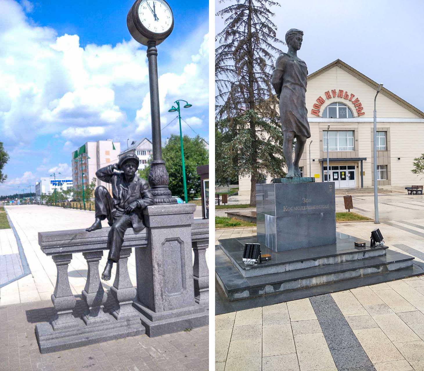 В центре города радуют глаз стильный ТЦ и тихая зона отдыха у пруда. И то, как уместно вписались разные такие фигуры, — героини Зои в сквере у ДК культуры и беспризорника Мишки Карася из сериала «Ликвидация», увековеченного фразой «Я из Рузы!». И, конечно, не пройдешь мимо «Дворца водных видов спорта»: заглянешь и махнешь стометровку в «льготный час»!