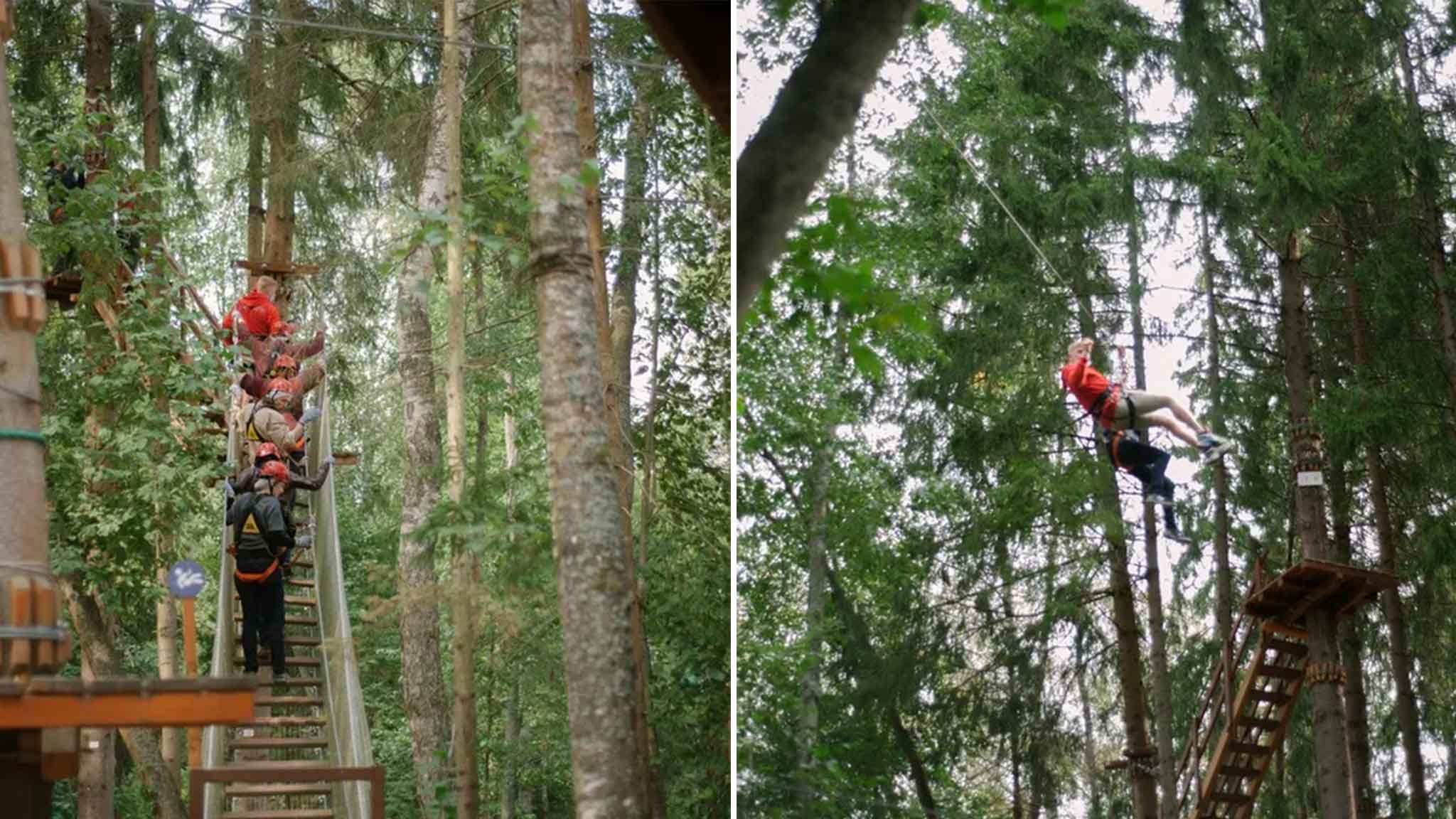 — Хотим! — закричали все, кроме меня. Я проходил такой веревочный квест у Дмитрия Шпаро вместе с глухонемыми детьми из одной школы и сильно опозорился перед школьниками. Но журналисты не знали, что их ждет, поэтому отважно залезли на сосну. Им предстояло «перелететь» с одного дерева на другое. Мужчины с задачей с грехом пополам справились, а женщины, испугавшись, стали проситься вниз. Я хихикал от восторга, а хозяин заведения сказал, что журналисты ныне пошли какие-то трусливые: