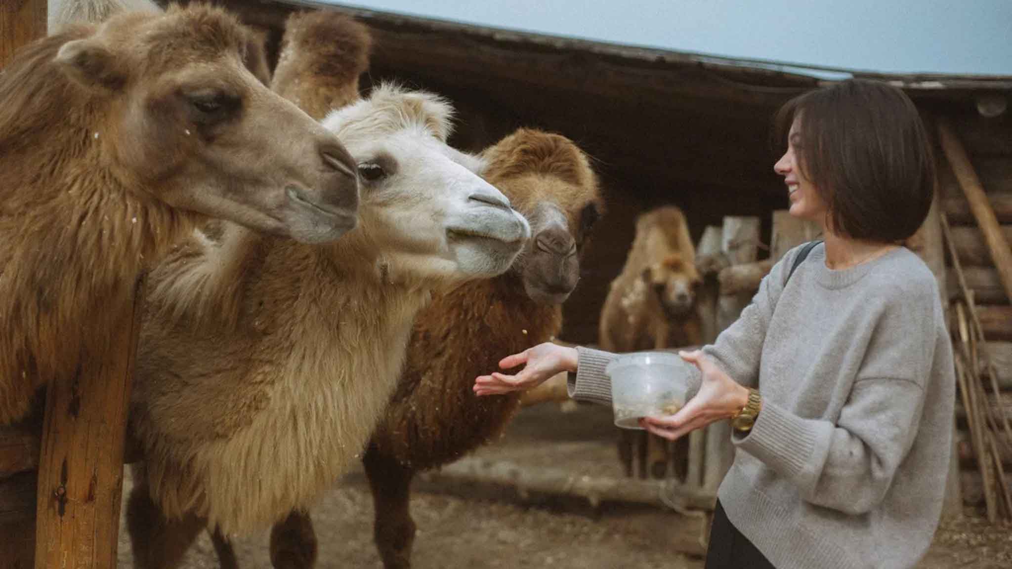 Едем дальше, в 13 километрах от Сергиева Посада встречаем этнопарк. Этот объект интересно посетить, если вы путешествуете с детьми. Юрты здесь стоят примерно, как в этнографическом музее «Тальцы» Иркутской области, но в придачу к юртам есть еще и животные, в частности, гуси, яки и верблюды. Летом можно кататься на верблюдах, зимой — на собаках и лопать вкусные буузы, они же позы, они же бурятские манты. Мы как-то писали, что от пандемического безденежья этнопарк распродает животных, но съездили и убедились, что с помощью бога и соцсетей беда отступила. Юрты стоят. Животные — толстые и ухоженные. Большой вычесанный верблюд катает туристов, а остальные верблюды клянчат еду. На моих глазах хитрое животное своровало у зазевавшейся туристки стаканчик с зернами, с ловкостью яшки-цыгана высыпало все себе в рот и удовлетворенно хрюкнуло.