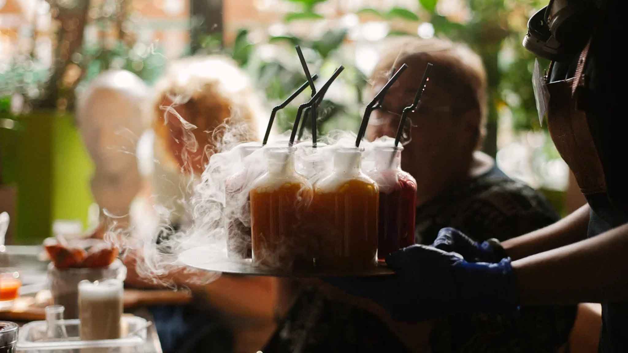В абсолютный восторг меня привело кафе «Ландау» на Карла Маркса, 7. Интерьер кафе — в виде физико-химической лаборатории. Кофе подают в смешных химических мензурках, а напитки можно смешивать самим из разных емкостей. Особой вкуснотой отличались поданные в ведерке наночебуреки.