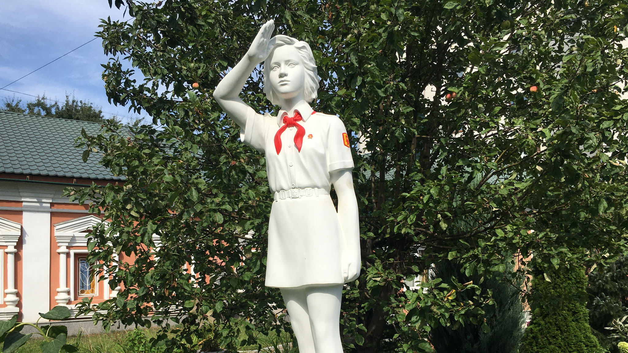 Фигуры пионеров выполнены в нормальный человеческий рост. И стоят лицом друг к другу. Он — горнист (вероятно, будит товарищей по детскому лагерю). Она — образцовый пионер (приветствует сверстника с помощью знаменитого жеста). Раньше школьники знали инструкцию не хуже, чем солдаты воинский устав. «Отдавая салют, пионер поднимает согнутую в локте правую руку перед собой так, что рука оказывается чуть выше головы».