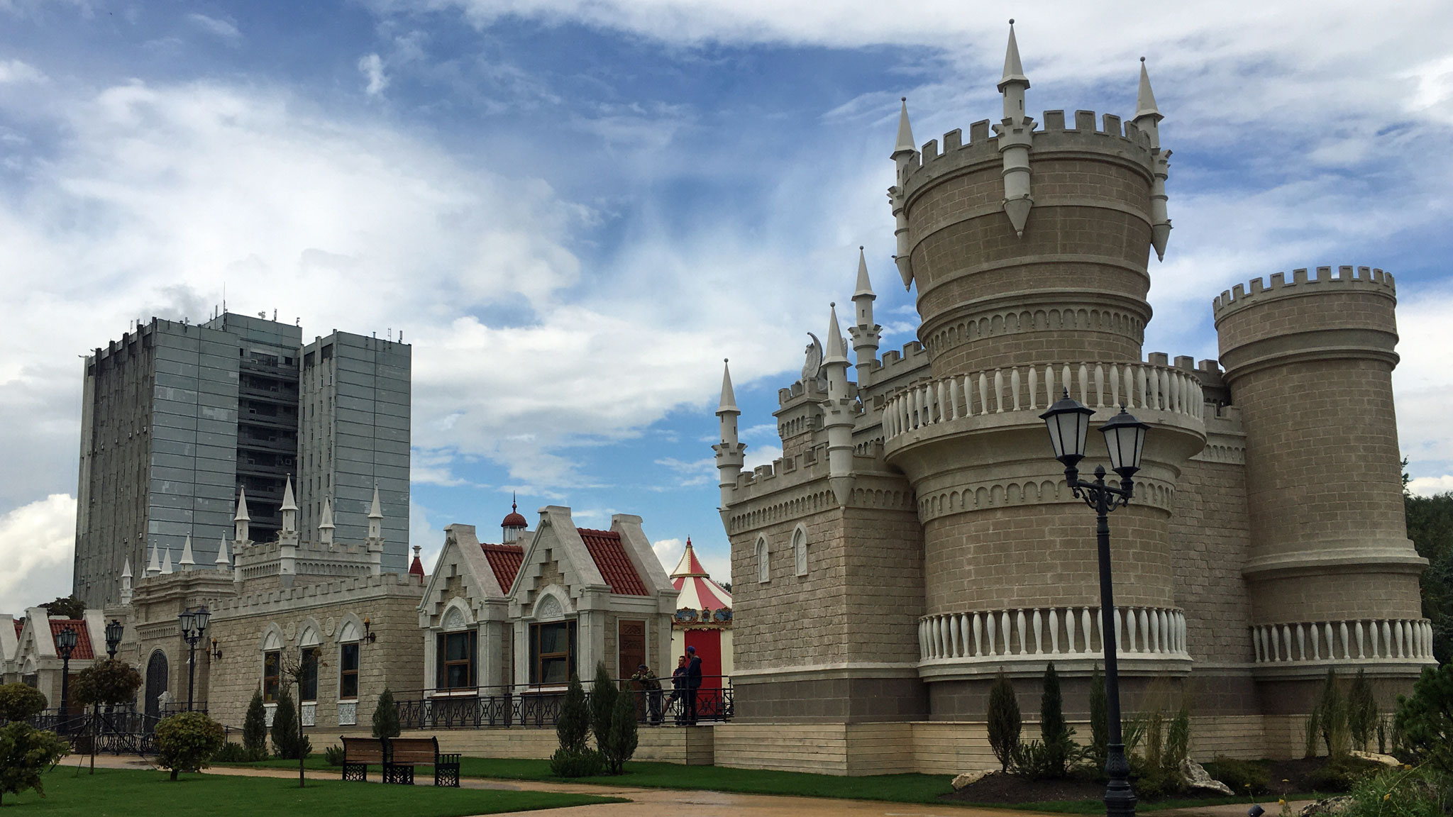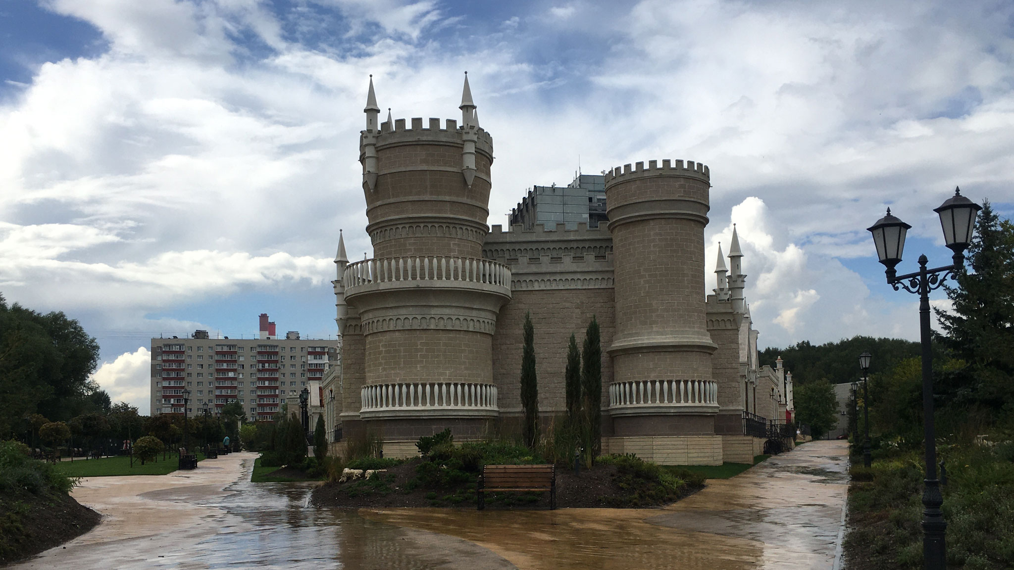 Снимки в интернете напоминают фотошоп. Как будто какой-нибудь шутник изучал архитектуру древнего Крыма и, чтобы развеять скуку, взял да и «построил» одним нажатием кнопки целое замковое подворье возле Гольяновского пруда. На фоне типовых многоэтажек. Сделал короткую подпись о том, что «это Москва, 21 век». И закинул в социальные сети. Некоторым пользователям до сих пор не верится, что такая красота и впрямь существует. Причем уже почти год.