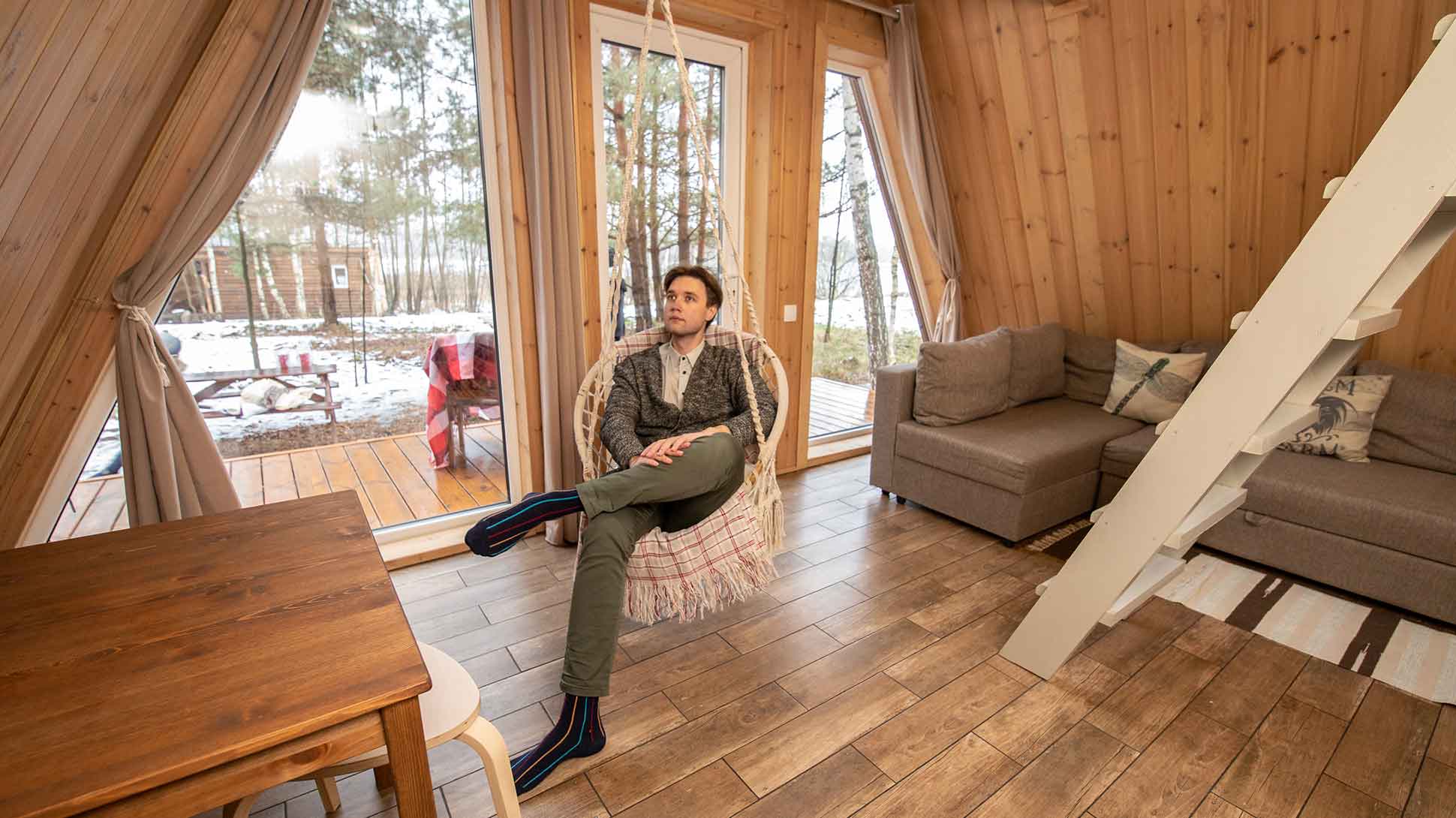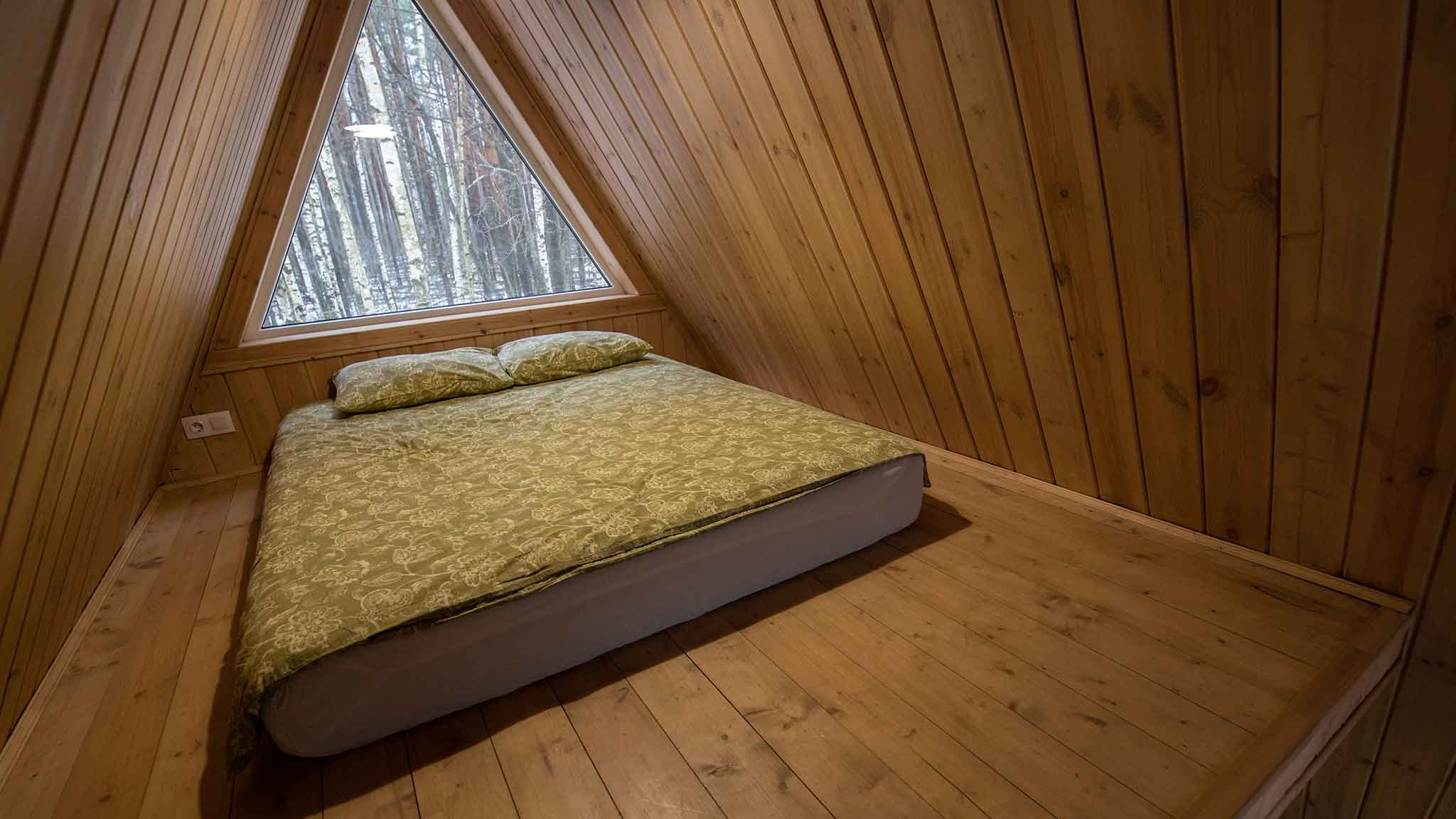 Для глэмпинга построили шесть каркасно-рамочных домиков — готовый проект продают строительные фирмы. Каждый стоит 1,5 миллиона рублей плюс мебель, сантехника, коммуникации. Площадь — 32 квадратных метра. Как житель классических 33 квадратных метров в хрущевке замечу, что визуально места в глэмпинге меньше. Все впритык, но от этого появляется уют.