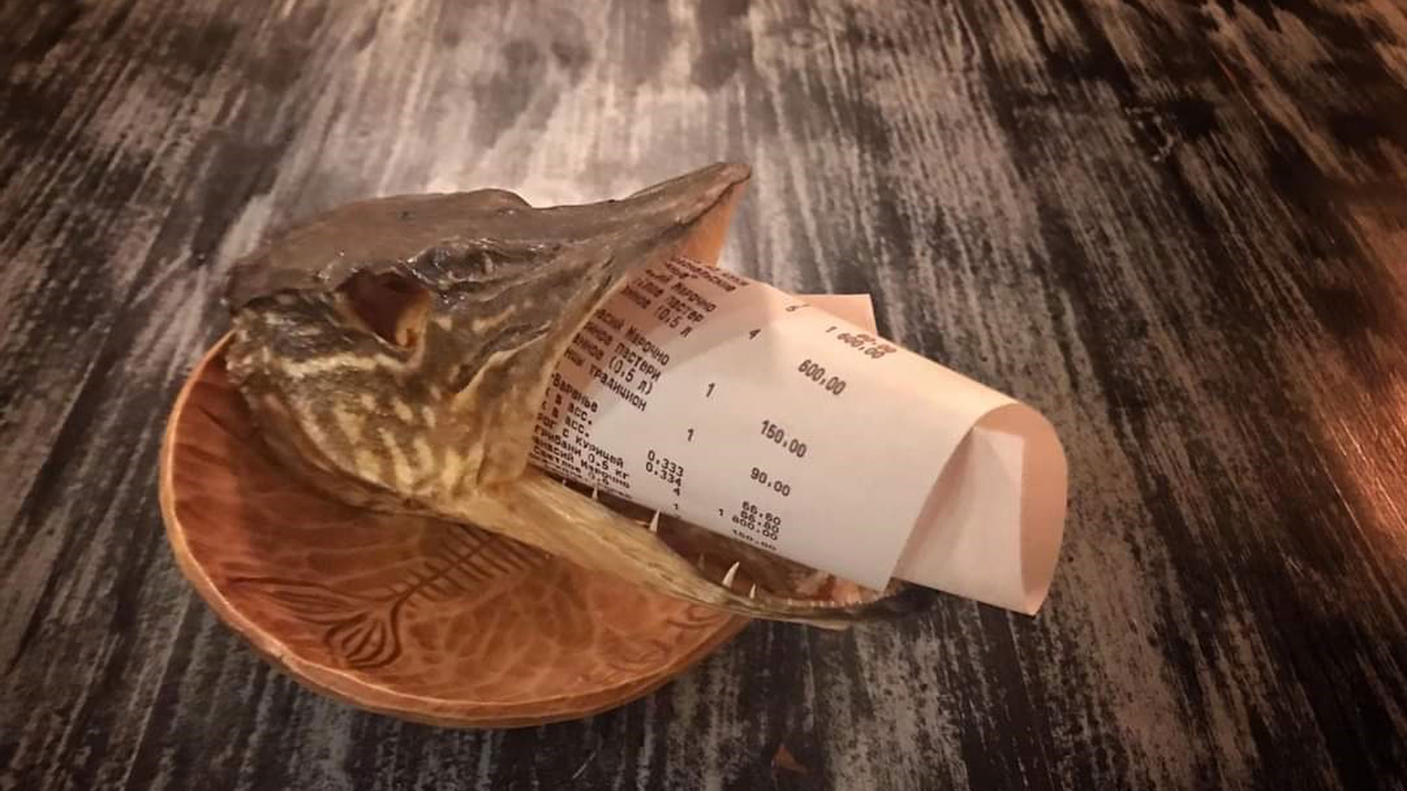 Зато счет (довольно скромный по московским меркам) принесли в пасти сушеной щуки, что несколько примирило с действительностью.