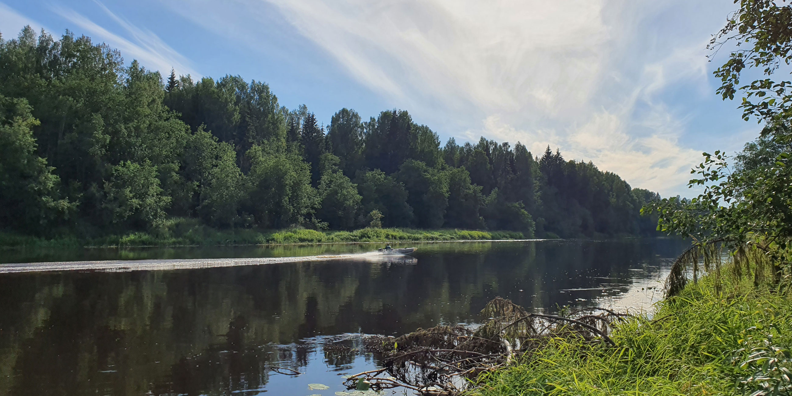 Отсюда хочется сплавиться, насколько сил и времени хватит. Но это невозможно по двум причинам. Первая — придется идти довольно долго вниз по течению, пока найдешь большую воду, чтобы спустить байдарку или лодку надувную. Если это удастся, то возникает вторая проблема — Верхневолжский бейшлот. Так мудрено называется плотина одноименного водохранилища. Сейчас это охраняемый объект. Поэтому сплав лучше начинать ниже бейшлота. Там река великолепна: не очень широкая, красивая, со стенами еловых и лиственных деревьев, подпирающих небо. Течение достаточно быстрое, можно даже не грести — тащит сама Волга-матушка. Однако уже здесь речка глубока, потому лучше запастись спасжилетами.