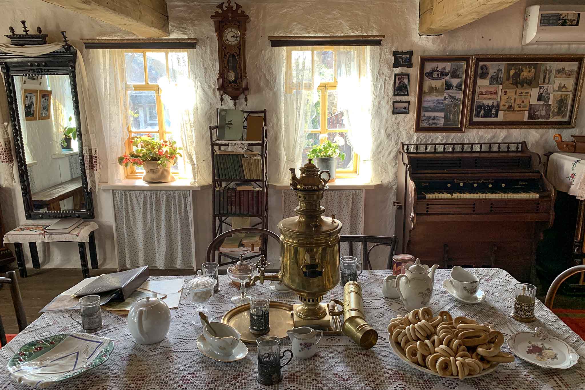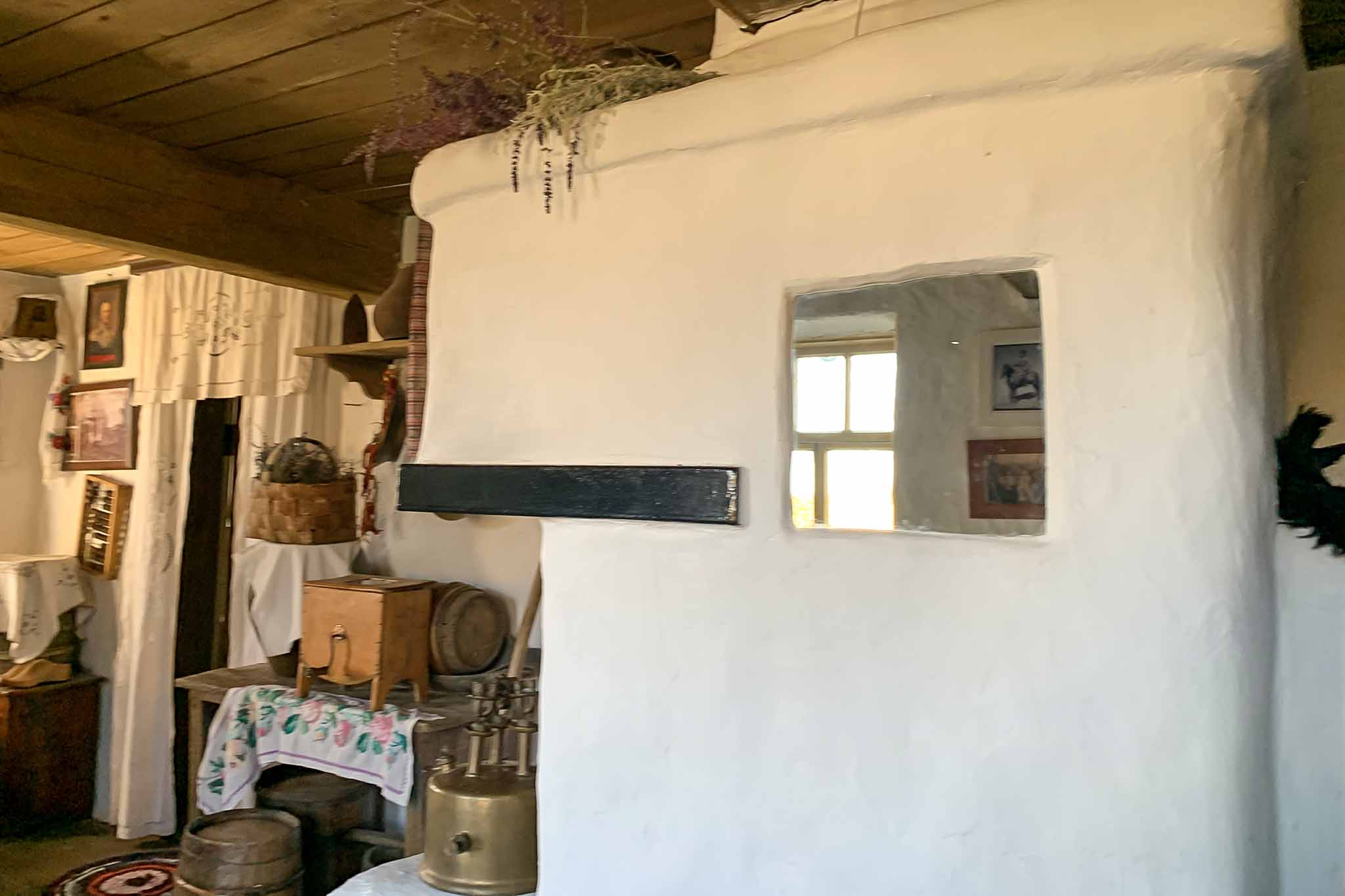 А на печке — мордоглядка! Что это? Маленькое зеркальце неровной формы на белом печном боку. В него хозяйка смотрелась украдкой, если, например, пришли гости — в большое зеркало смотреть неприлично. Еще одна деталь из жизни казачек Нижнего Дона — обычай пить кофе, или «кохвий»: