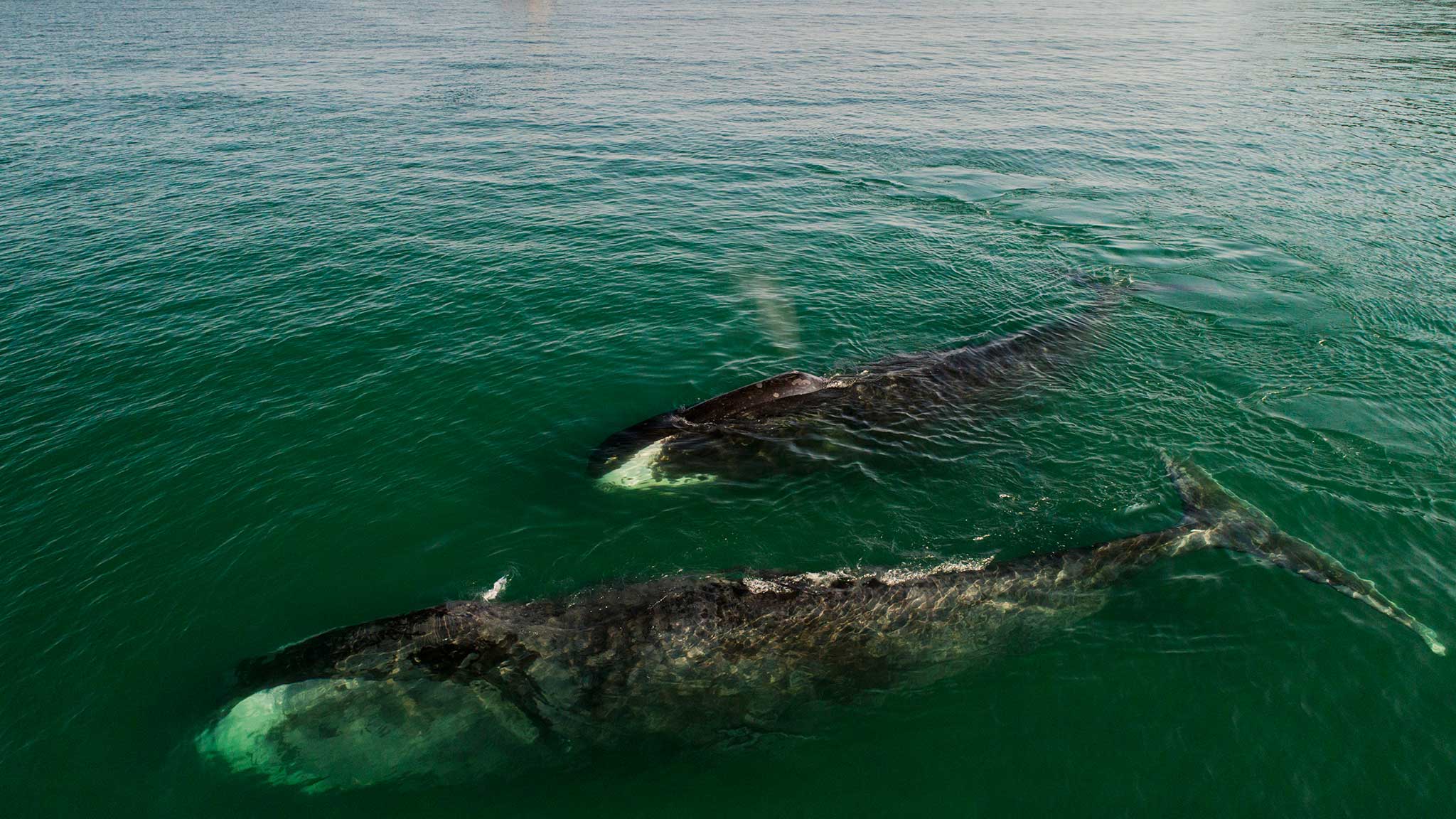 Наиболее интересным и редким представителем усатых китов Шантарского моря является гренландский, или полярный кит. Он достигает более двадцати метров в длину и веса свыше сотни тонн. Способен опускаться на глубину до 200 м. Ученые считают, что отдельные особи могут доживать до 200 лет, что делает этот вид претендентом на звание самого долгоживущего млекопитающего.