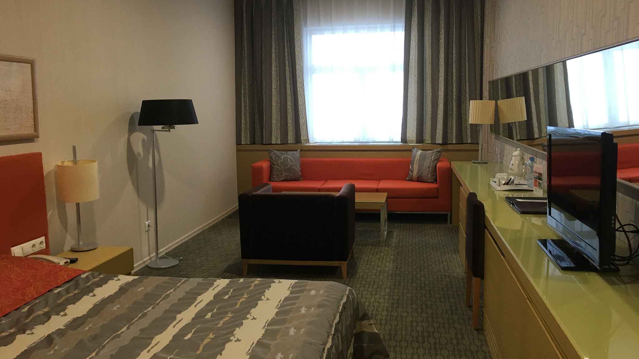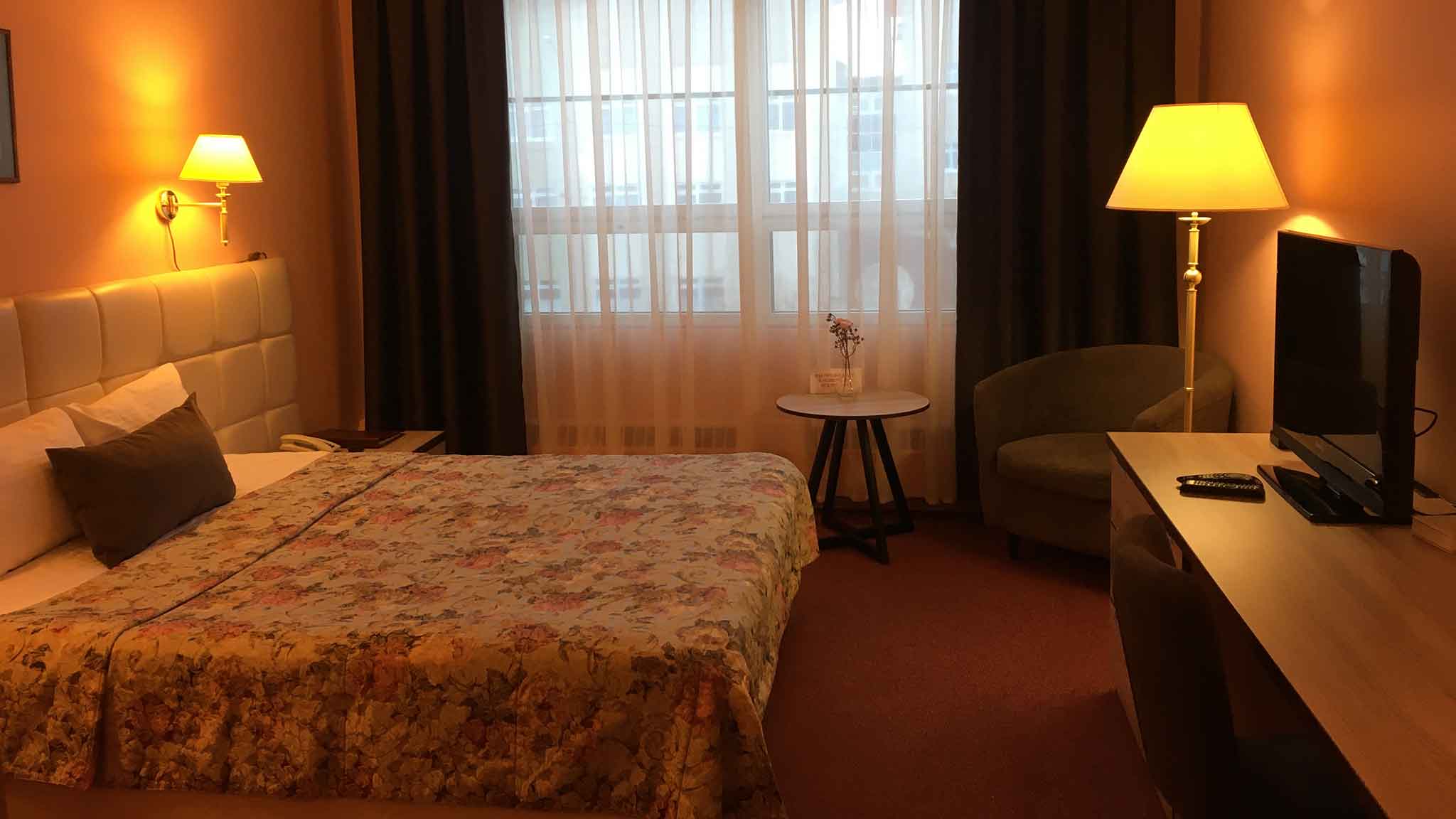 Убранство номеров соответствующее. Тоже есть все, что нужно. Цена — 6600 руб. за двухместный номер при двухместном размещении с завтраком.