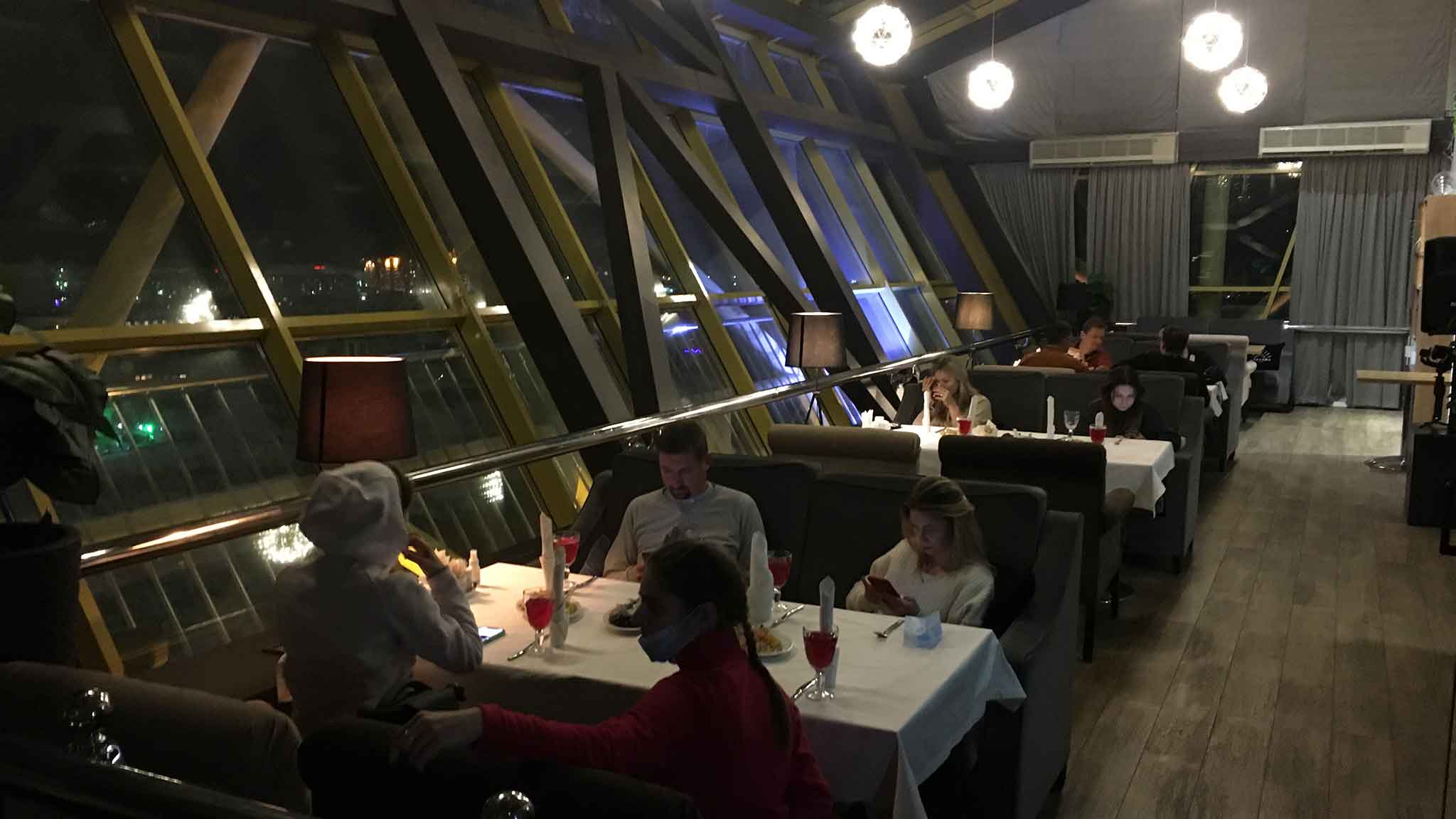 Здесь, на высоте 71 метр, работает ресторан «Панорама». Добираются сюда на скоростном прозрачном лифте. Тем, кто боится высоты, лучше зажмуриться.