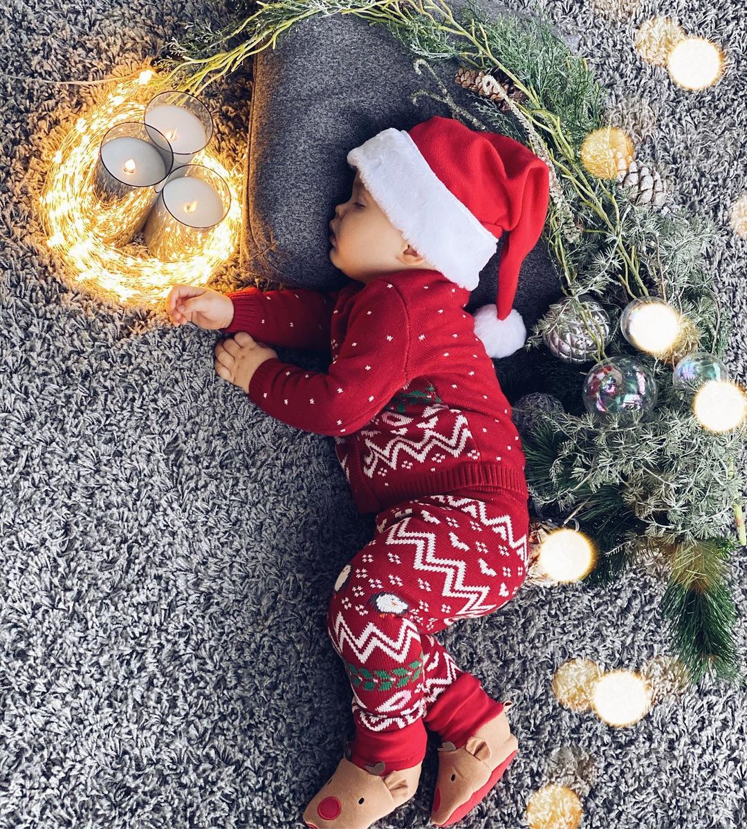 Модель добавила, что их новогодняя елка была наряжена еще в первых числах декабря, но сфотографироваться всем семейством удалось только спустя две с лишним недели.