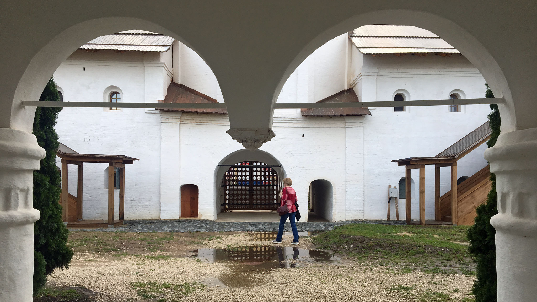 В белокаменных палатах «Дом Ершова (Сапожникова)», памятнике допетровской Руси, я наотрез отказался от экскурсии и трижды повторил, что все посмотрю сам и очень тороплюсь. Сотрудники все поняли, хотя отпустить меня совсем без экскурсии не могли и рассказали про все комнаты, но все же не так подробно и не по часу на каждую. Меня водили по лестнице, в стене дома, показывали удивительное народное приспособление, называемое «просорушка», рассказывали про тайный ход, идущий из дома на другой берег Клязьмы и особенно вдохновились, когда я спросил, есть ли тут домовые.
