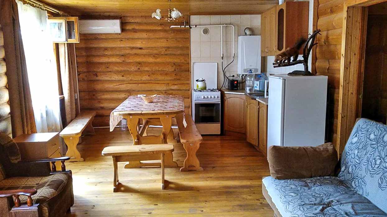 Итак, Наталья Александровна встречает нас у ворот и ведет за собой в охотничий домик. За 2000 рублей с человека у вас тут полным-полна коробочка всех загородных удовольствий: от кухни-столовой с ТВ-плазмой, санузла и гостевой с пятью диванами до веранды и беседки, гамака и велосипедов на ходу. Кстати, все это бесплатно, так сказать в придачу. Вот как раз муж хозяйки, Валерий, заканчивает подготовку колесной техники и объясняет, где тут прокатиться для полного удовольствия. И, конечно, баньку надо заказать на вечер (1500 рублей за час), со своим, кирицким, чаем и мёдом с липовой пасеки.