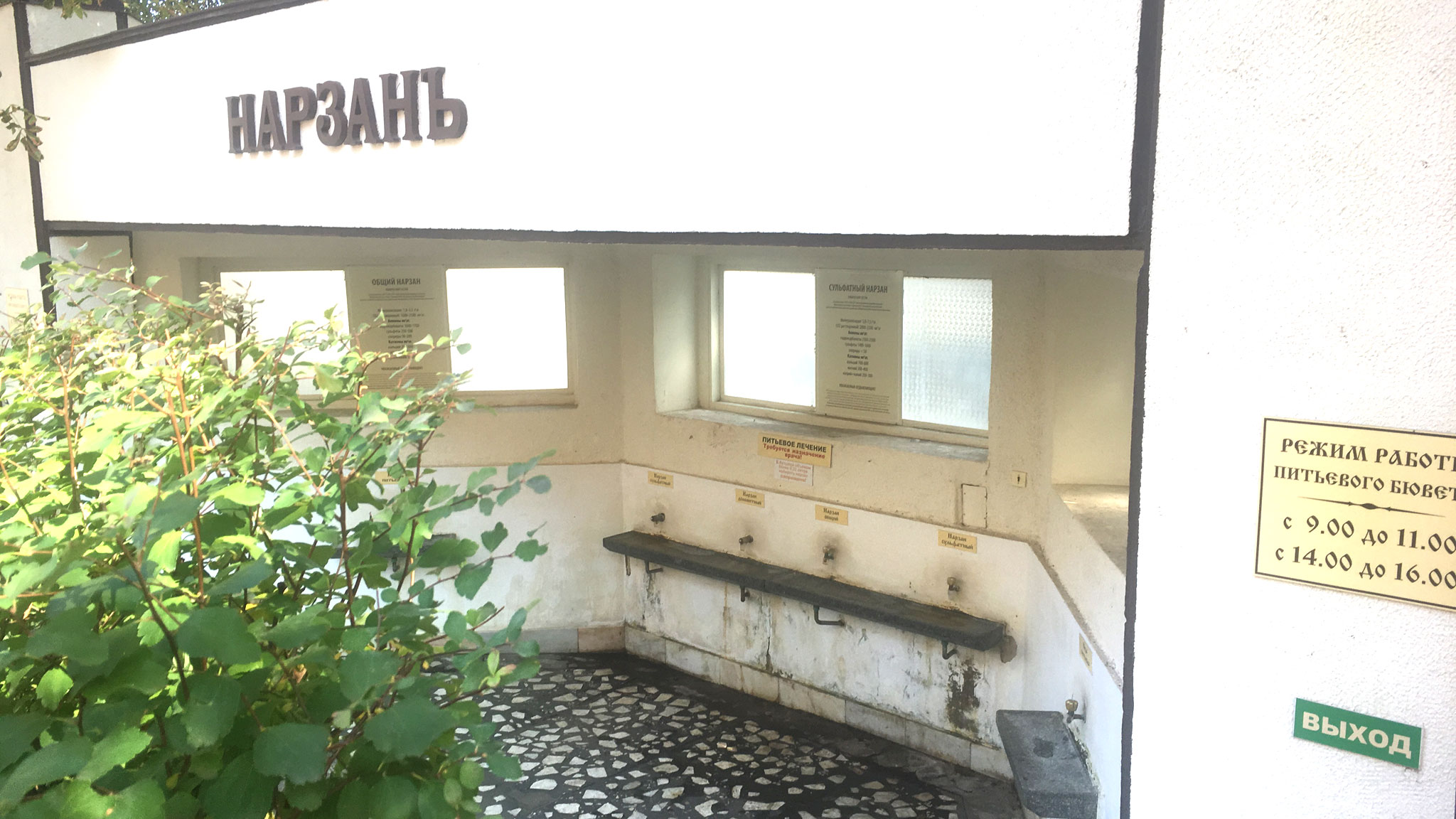Главное место, куда здесь ходят постоянно — легендарная Нарзанная галерея. Тут пьют воду, которую назначает врач. Минералка лечебная, есть противопоказания.