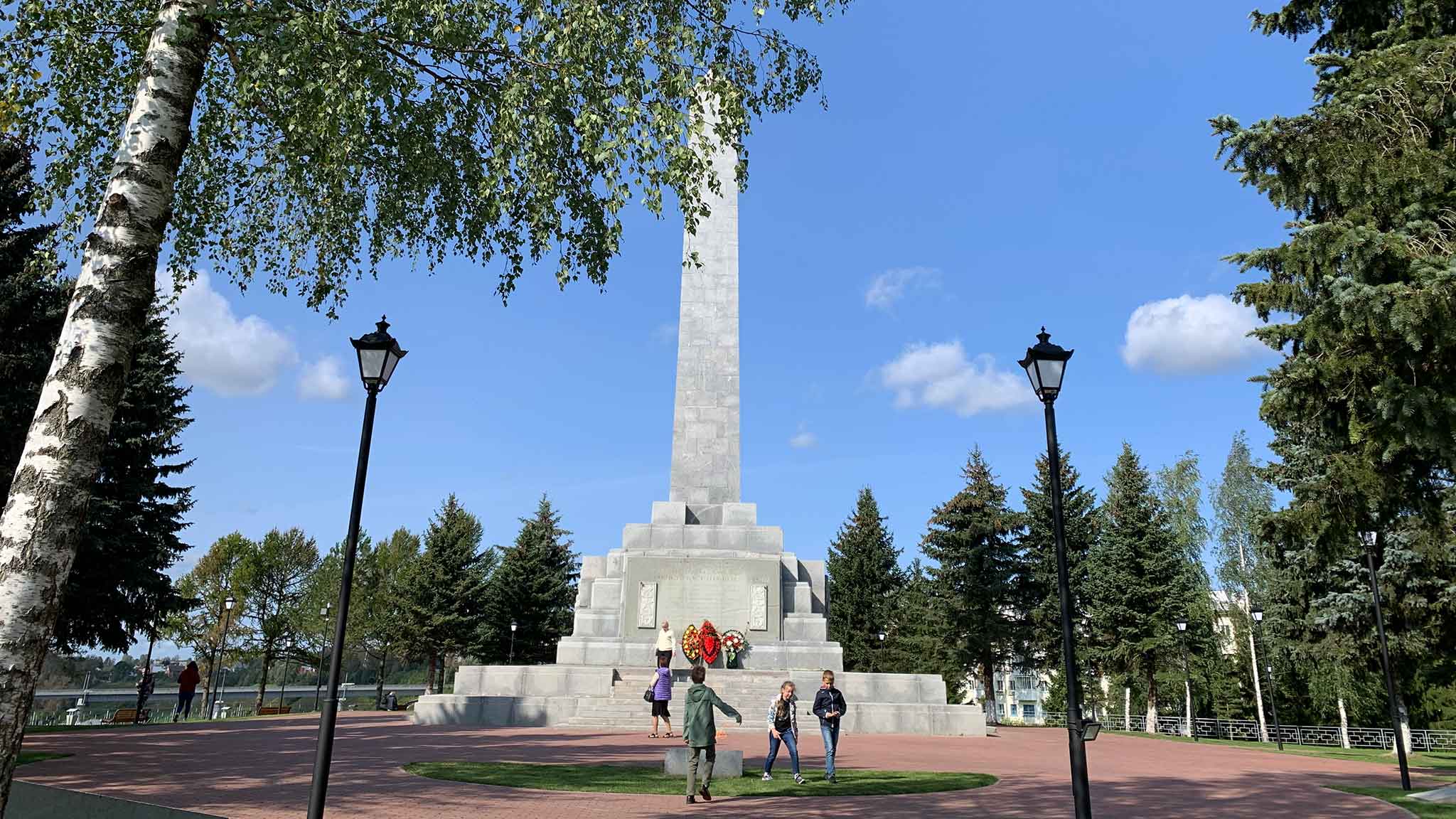 И сразу захватывает военная история: на левом берегу (а здесь он, вопреки всем законам географии, крутой) в сквере — Вечный огонь у обелиска в честь героев Великой Отечественной войны, поставленного еще в советские годы.