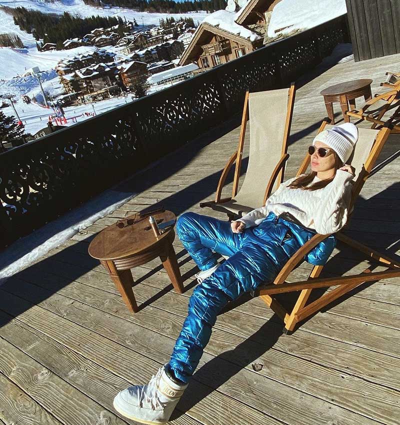 Известная модница даже на курорте остается верна себе и выбирает для катания стильные горнолыжные костюмы.