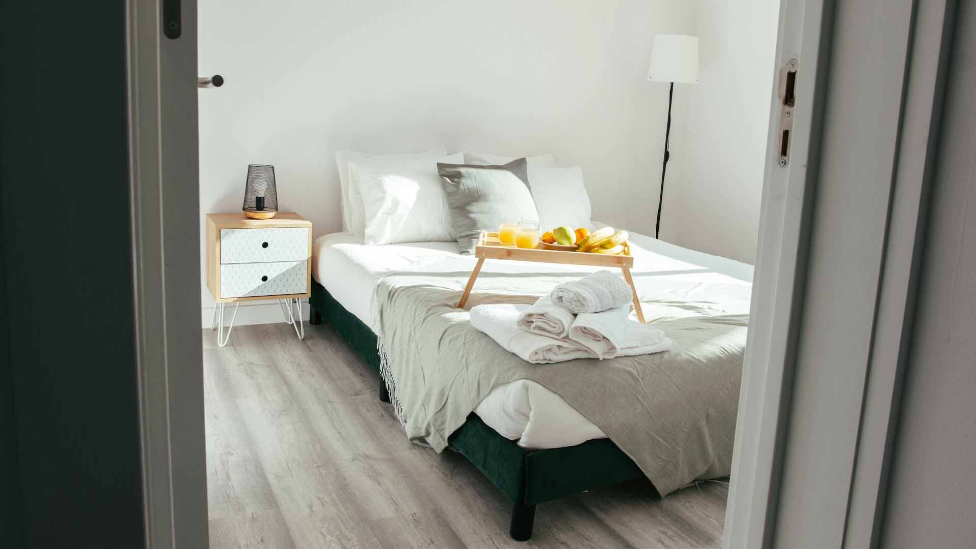 В пятизвездочном комплексе с видом на море клиентам предлагают просторные трехкомнатные апартаменты. В двух спальнях установлены большие кровати, есть рабочие места, ТВ, отдельная ванна у окна. В гостиной имеются два раскладывающихся дивана. Кухня оборудована всем необходимым: плитой, духовкой, посудомоечной машиной, посудой для приготовления пищи. Интерьеры выполнены в минималистичном стиле. Машиноместо, Wi-Fi, бесплатные завтраки включены в стоимость проживания.