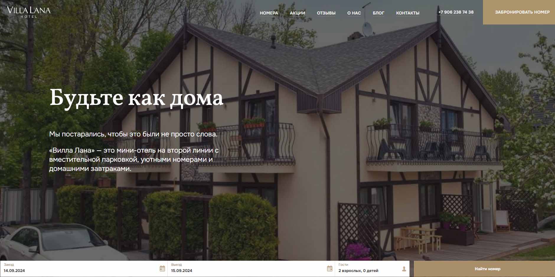 Мини-отель с парковкой, уютными номерами и домашними завтраками. Находится в тихом месте, на второй линии от моря. Номерной фонд разнообразен: от стандарта до люкса, есть апартаменты. Завтраки по системе «шведский стол» входят в стоимость бронирования. Несколько номеров оборудованы мини-кухней с посудой для самостоятельного приготовления пищи. В закрытом зеленом дворе предусмотрена зона отдыха с шезлонгами, мангалом, детской площадкой. Есть подогреваемый бассейн и сауна.