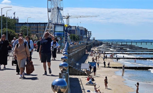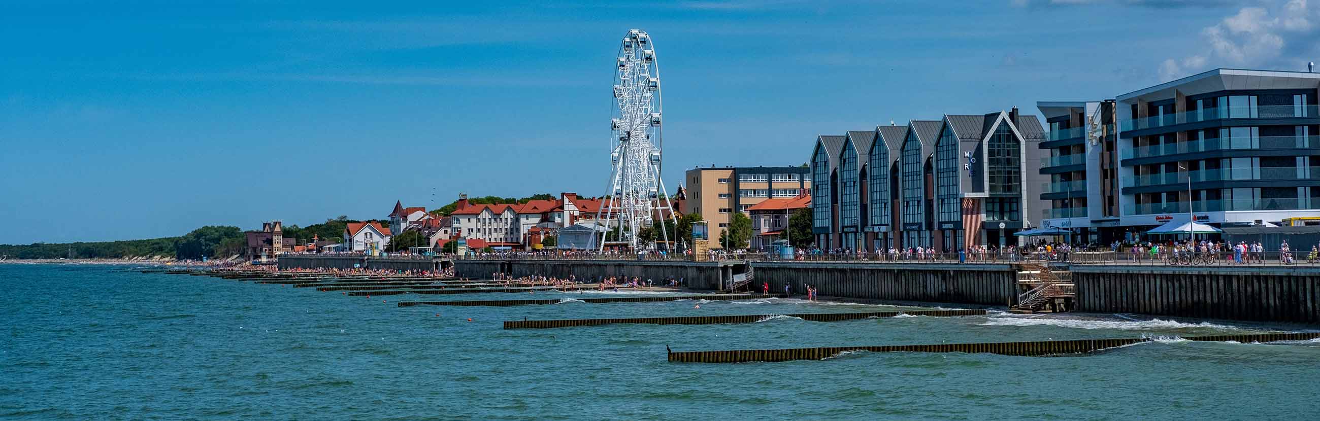 Летом на променаде — настоящий курортный рай: люди отдыхают на пляже с прекрасными видами Балтийского моря. С приходом осени пейзаж меняется: ветер приносит ароматы водорослей и соленых брызг, а после шторма можно наблюдать, как волны почти достигают тротуара, словно соревнуясь друг с другом.