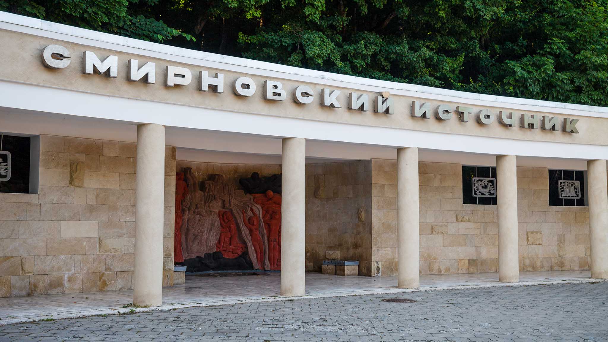На украшенной фонтаном площади в центре парка расположена красивая питьевая галерея: две ротонды соединяются пролетом с колоннами. В середине XIX века здесь был родник, который называли Грязнушкой. Заметив, что местные жители часто набирают из него воду, бальнеолог и главный врач Кавминвод Семен Смирнов решил проверить состав. В результате он обнаружил значительное содержание железа в минералке. В 1865 году источник впервые был каптирован. Имя врача бывшая Грязнушка получила в конце XIX века, тогда же здесь построили бюветы.