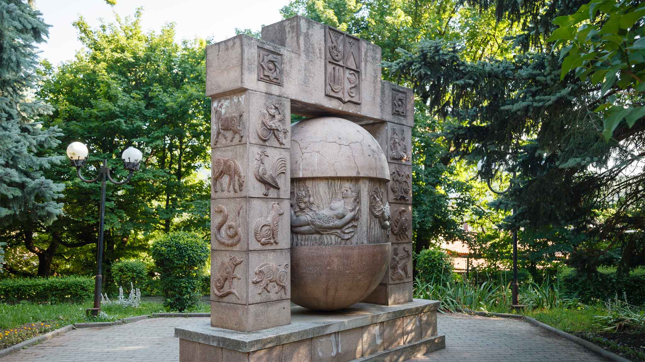Популярный арт-объект также известен как скульптура «Знаки зодиака». Установили эту достопримечательность в Курортном парке в 2000 году недалеко от дворца эмира Бухарского. Это одно из самых необычных мест на Кавминводах — тут принято загадывать желания! Для этого придется приложить немало усилий и позвать подмогу. Считается, что шар нужно прокрутить вокруг оси (вся конструкция весит около двух тонн), затем потереть два своих знака (зодиакальный и китайского гороскопа) и попросить об исполнении заветной мечты.
