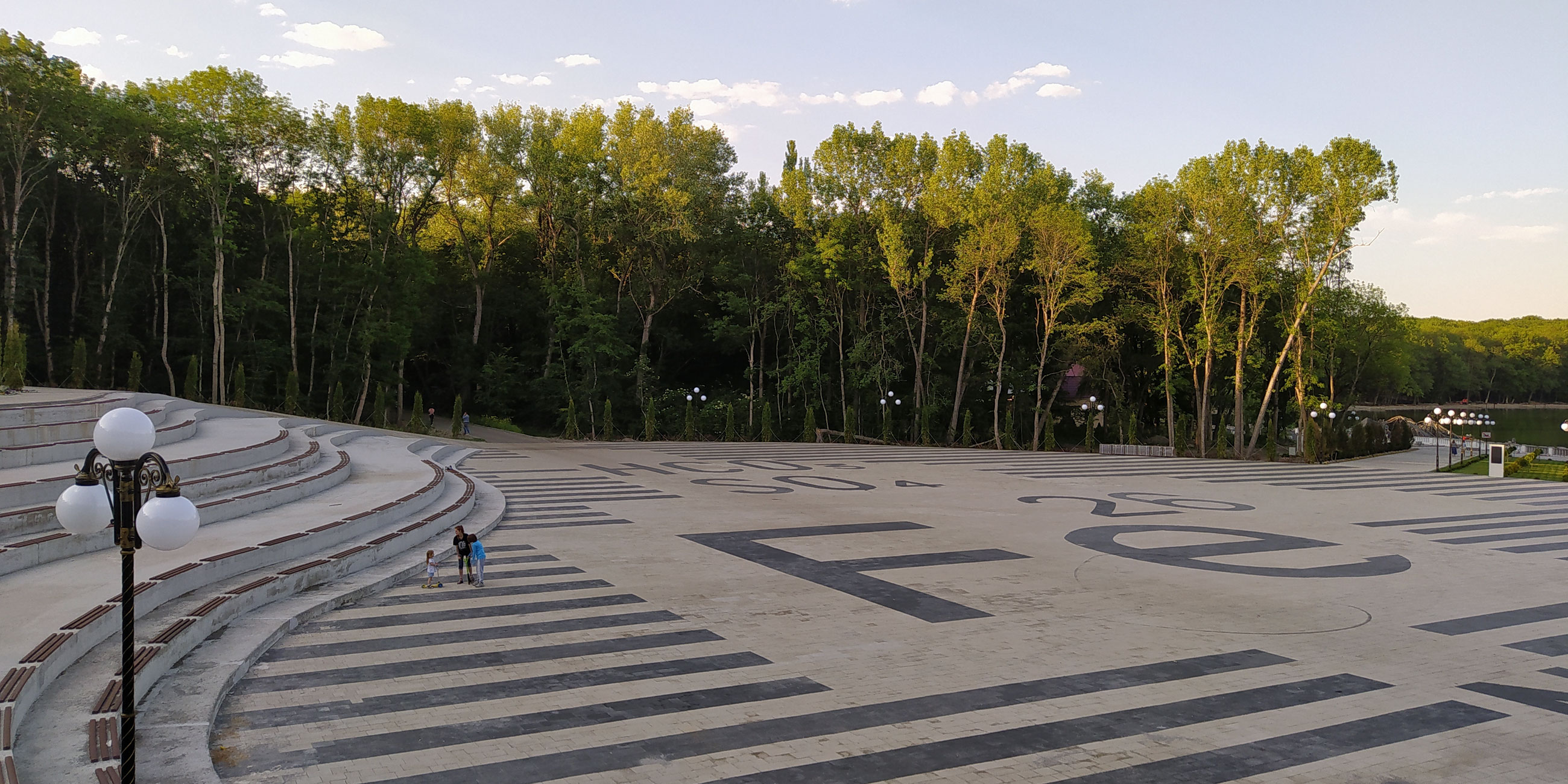 Перед пляжем курортного озера Тридцатка обустроен большой амфитеатр с необычной площадью. Она украшена латинскими обозначениями химических элементов и соединений. Какая связь с курортом? Минеральные источники Железноводска богаты всем этим. Самая крупная надпись — Fe 26 — железо с атомным весом. Название элемента символизирует город, а число при этом совпадает с автомобильным кодом Ставропольского края.