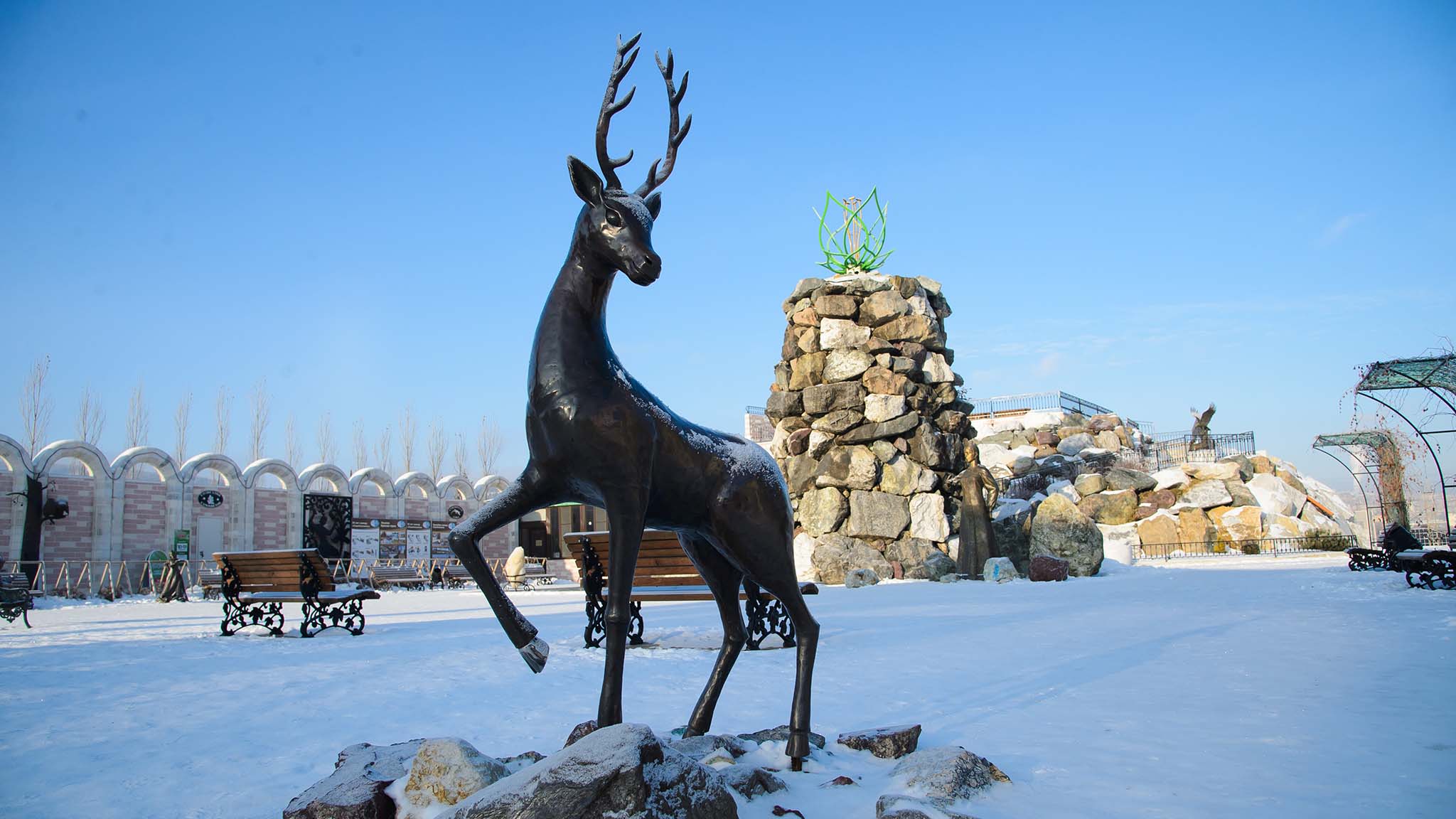 Над парком возвышается смотровая площадка, высота которой превышает десять метров. Она построена из каменных глыб, привезенных из восьми карьеров Свердловской и Челябинской областей. Здесь можно увидеть мрамор, гранит, малахит, змеевик, азурит, таганаит и скальные породы с Уреньги. Оттуда открывается красивый вид на Златоуст, горный хребты и национальный парк «Таганай».