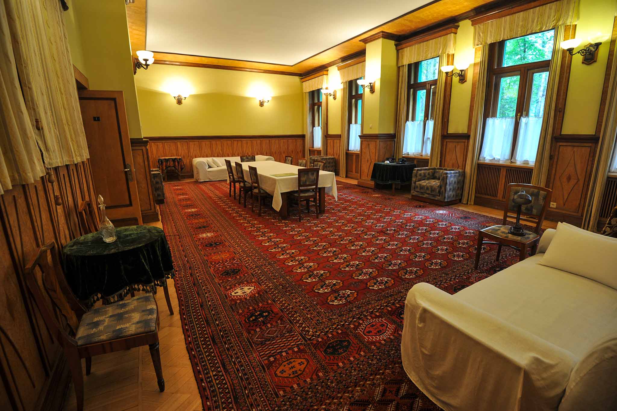 «Ближняя», или Кунцевская, дача была не просто местом для отдыха, Сталин жил там постоянно вплоть до самой смерти. Ему были не по душе большие помещения, поэтому кабинет и спальни были компактными. Зато обеденные зоны позволяли принимать иностранных коллег и важных персон.