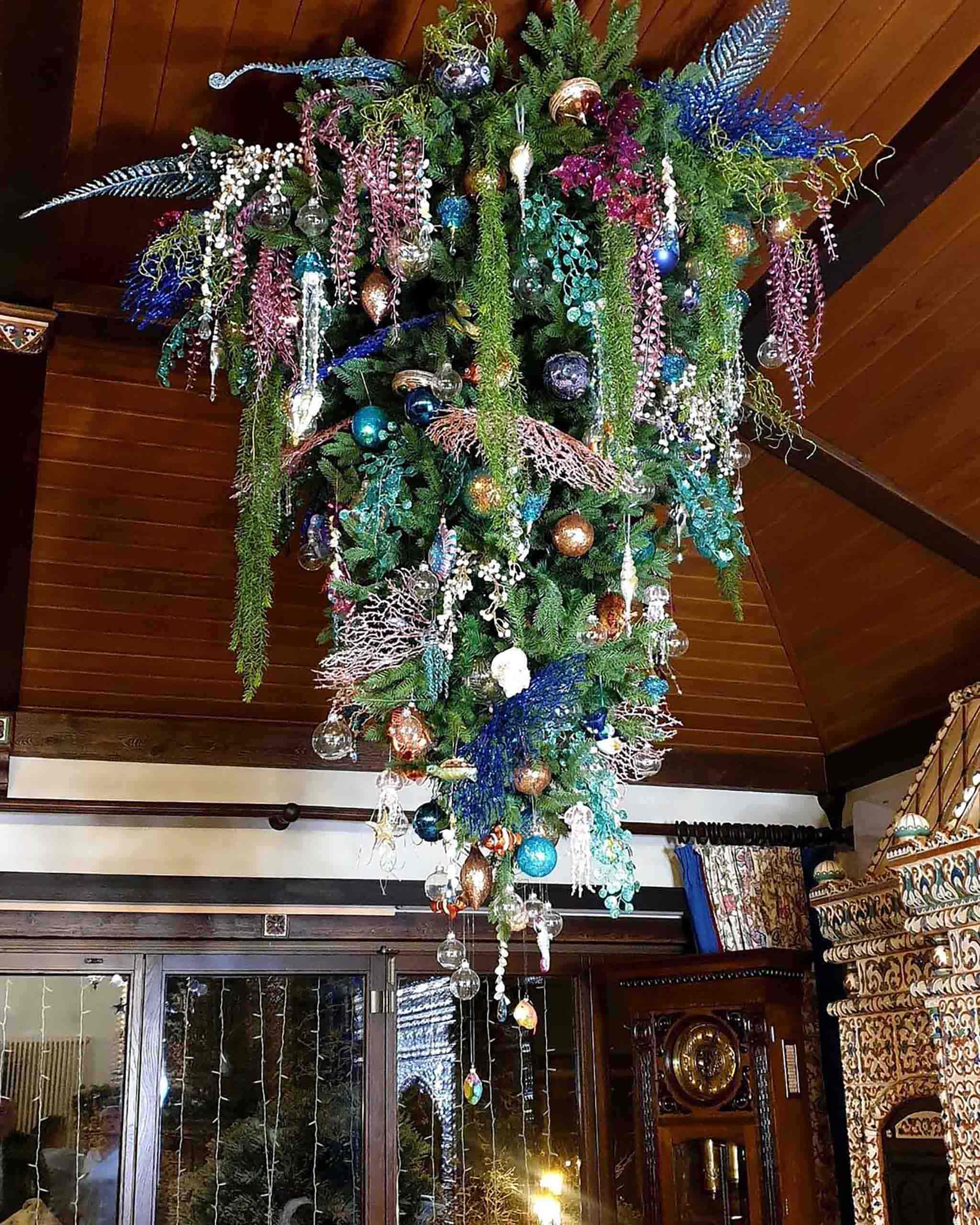 Балерина Анастасия Волочкова показала украшенный как внутри, так и снаружи особняк. Волочкова обратилась к дизайнерам, которые выбрали яркие гирлянды для фасада дома и ворот. Так же украшены и садовые ели. Главное праздничное дерево Волочковой расположено на мраморной лестнице внутри особняка. Дизайн ели довольно сдержанный, но яркости прибавила опять же гирлянда.