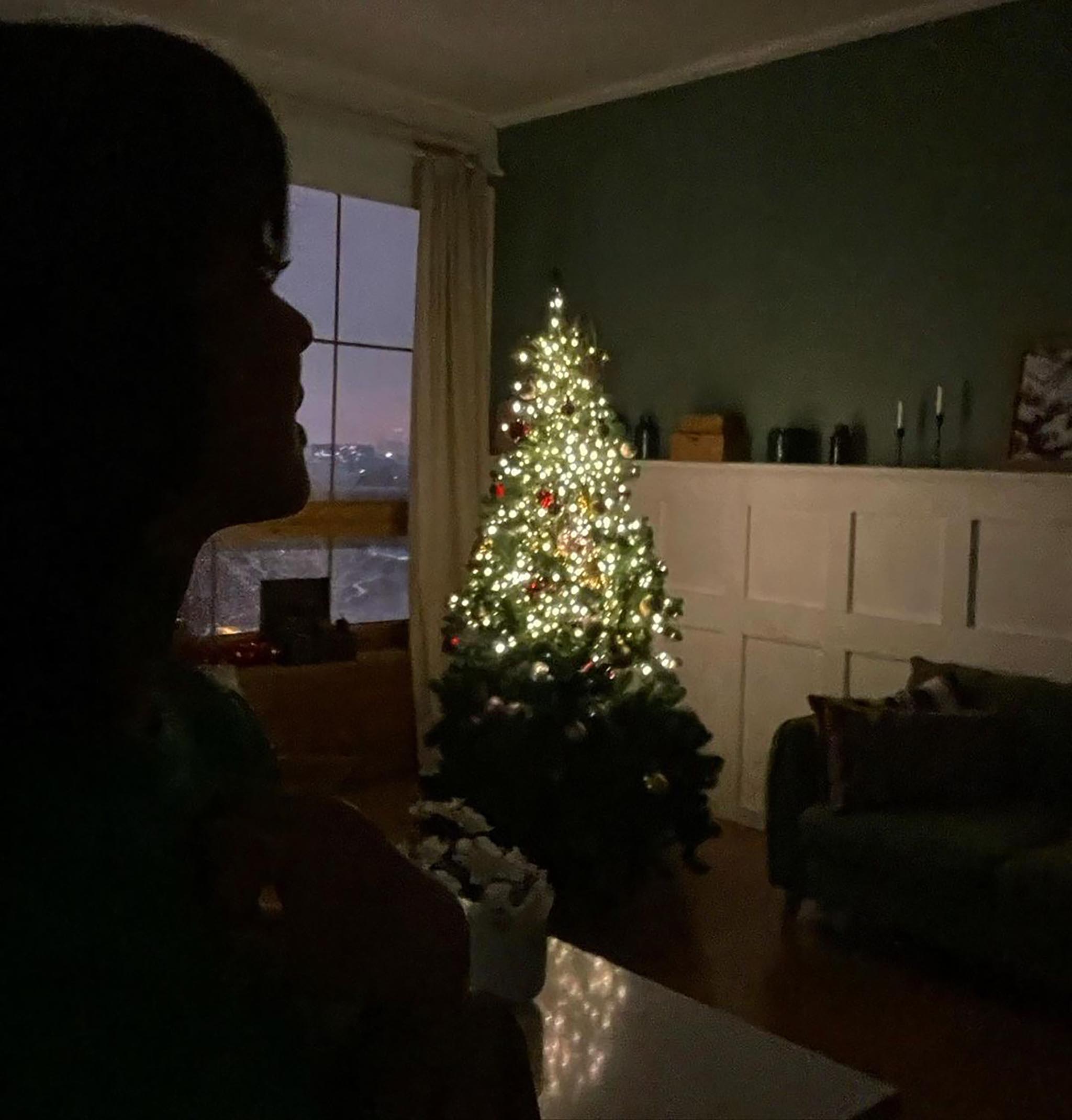 Певица Глюкоза выбрала настоящую ель. Артистка купила пушистую красавицу, которую нарядила на свой вкус. Елочные игрушки лилового оттенка вместе с нежно-зелеными хорошо сочетаются с интерьером дома. Глюкоза добавила блестящие ленточки, придающие праздничности. Под елью лежат подарочные коробки с ярким акцентом — алыми бантами.