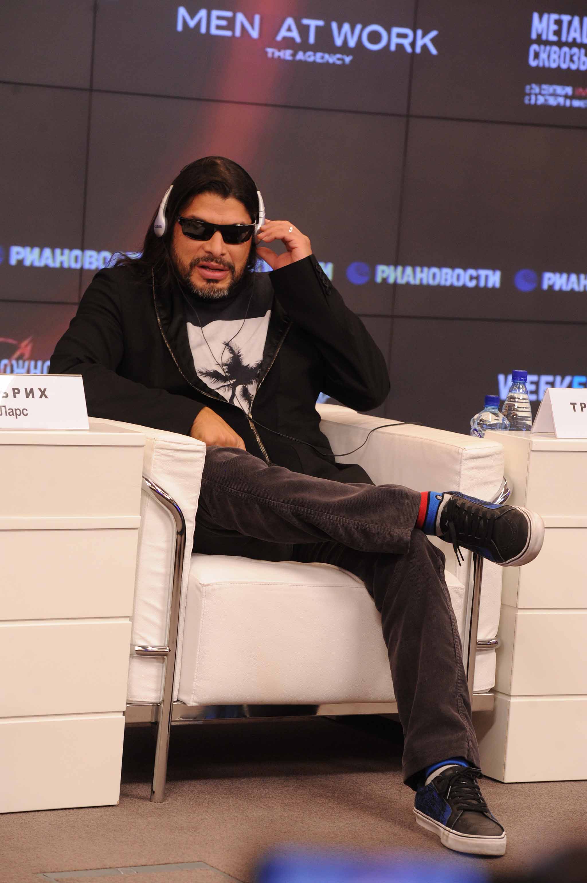 Знаменитая группа Metallica частенько бывает в России в рамках гастролей и не только. Так, в 2013 году исполнители в отеле «Ритц-Карлтон» в Москве презентовали фильм «Metallica: Сквозь невозможное». События картины разворачиваются на фоне концерта группы. Название фильму дала песня Metallica «Through the Never». Ларс Ульрих и Роберт Трухильо попозировали на крыше отеля перед камерами. Иностранцы немного замерзли, однако на их настроении это не сказалось. Ульрих и Трухильо также провели пресс-конференцию, на которую Роберт надел носки в цвета российского триколора. По его словам, носки ему подарил российский друг Дмитрий, и музыкант решил, что это отличный наряд для Москвы.