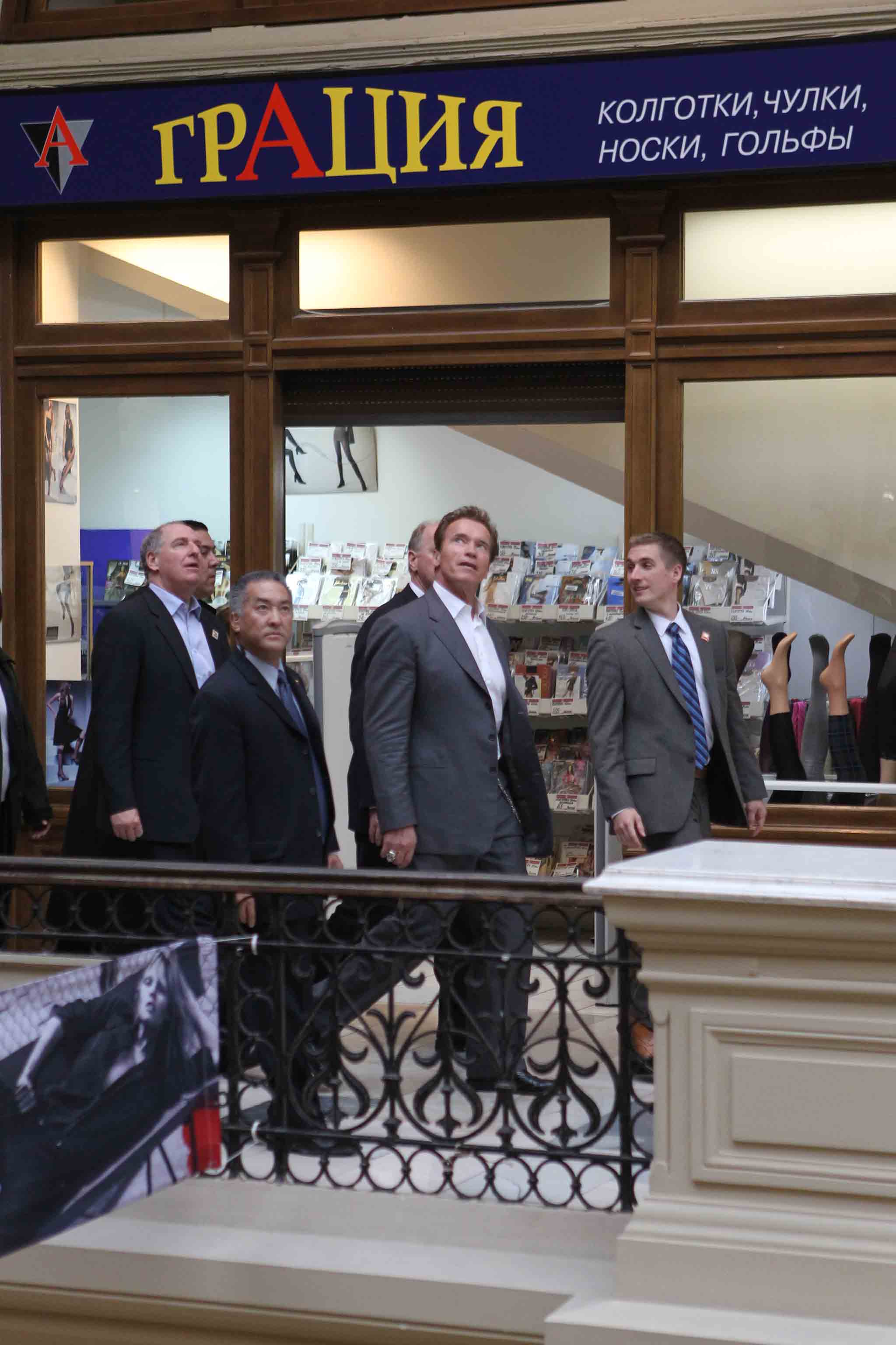 Позже артист бывал у нас часто — Шварценеггера приглашают на официальные мероприятия, приезжает он и для того, чтобы презентовать фильмы со своим участием. Однако актер не забывает и о развлечениях и шопинге. Например, однажды Шварценеггер прогулялся по ГУМу, оценив архитектуру и ассортимент универмага.