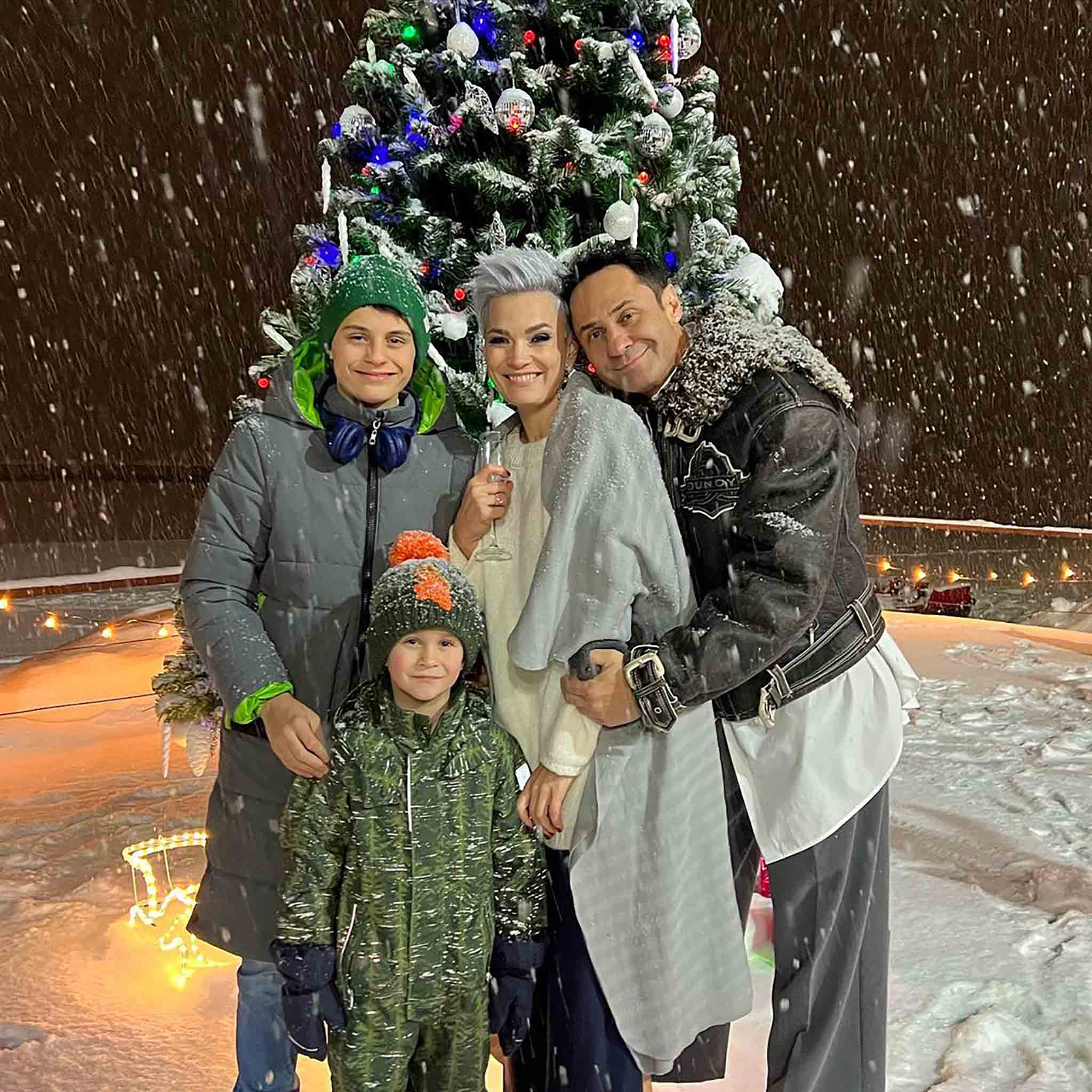Певец Стас Костюшкин отмечал Новый год в кругу семьи. Артист на личной страничке поделился снимком с женой и сыновьями на фоне заснеженной ели. Был накрыт праздничный стол с шампанским. Уже на следующий день артист отправился в спортивный зал — сбрасывать последствия застолья.
