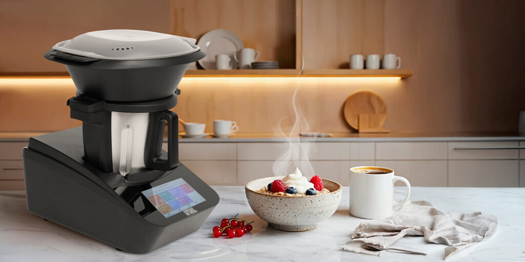 И не только готовить:  GF-KP100 SmartBot это еще и весы, кофемолка, мультирезка…. Кстати, и в приложение, и в сам комбайн загружена книга с рецептами – более 400 пошаговых подробных инструкций на русском языке. А продвинутые повара и кулинары смогут экспериментировать с ручными настройками.