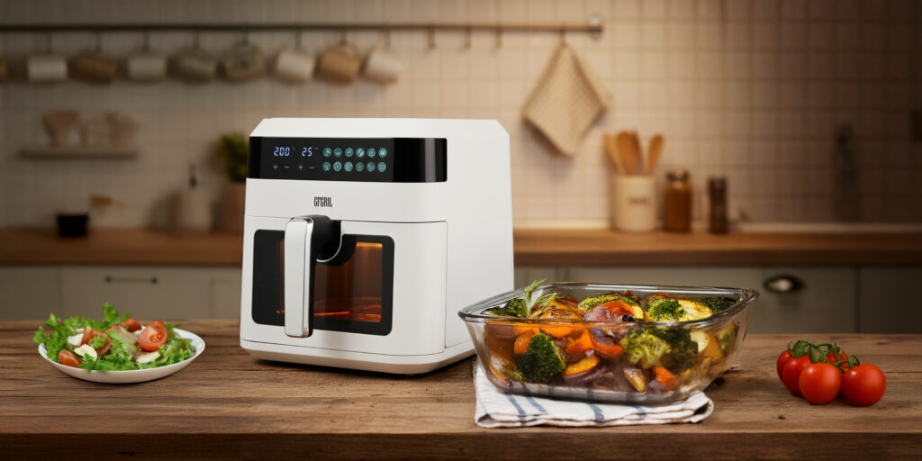 Аэрогриль — это настоящий помощник для тех, кто хочет снизить потребление жиров. В нем еда готовится исключительно с помощью горячего воздуха, без добавления масла, поэтому блюда получаются полезными, но при этом такими же сочными и ароматными, как на обычном гриле.