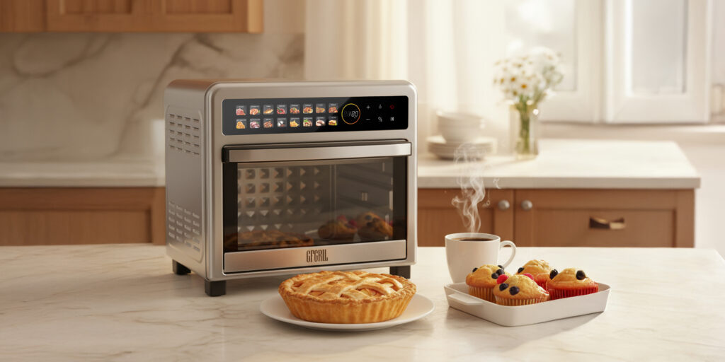 Мини-печь — это своего рода гибрид духовки, хлебопечки и микроволновки. Ее главная особенность — компактность: идеально для тех, у кого маленькая кухня или для тех, кто предпочитает готовить небольшими порциями. А еще это лучшее, что можно взять с собой на дачу.