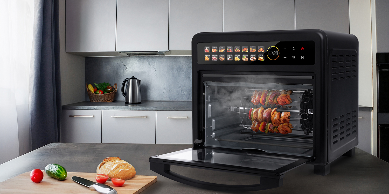 Более того, современные аэрогрили имеют множество программ и дополнительных функций. Например 12-литровый гриль GFA-9500 оснащен девятью программами приготовления: от мяса и рыбы до пиццы и выпечки. Благодаря вертелу, который идет в комплекте, у вас получится сочная курица, на шампурах можно сделать настоящий шашлык, а в специальной корзинке приготовить аппетитную картошку фри.