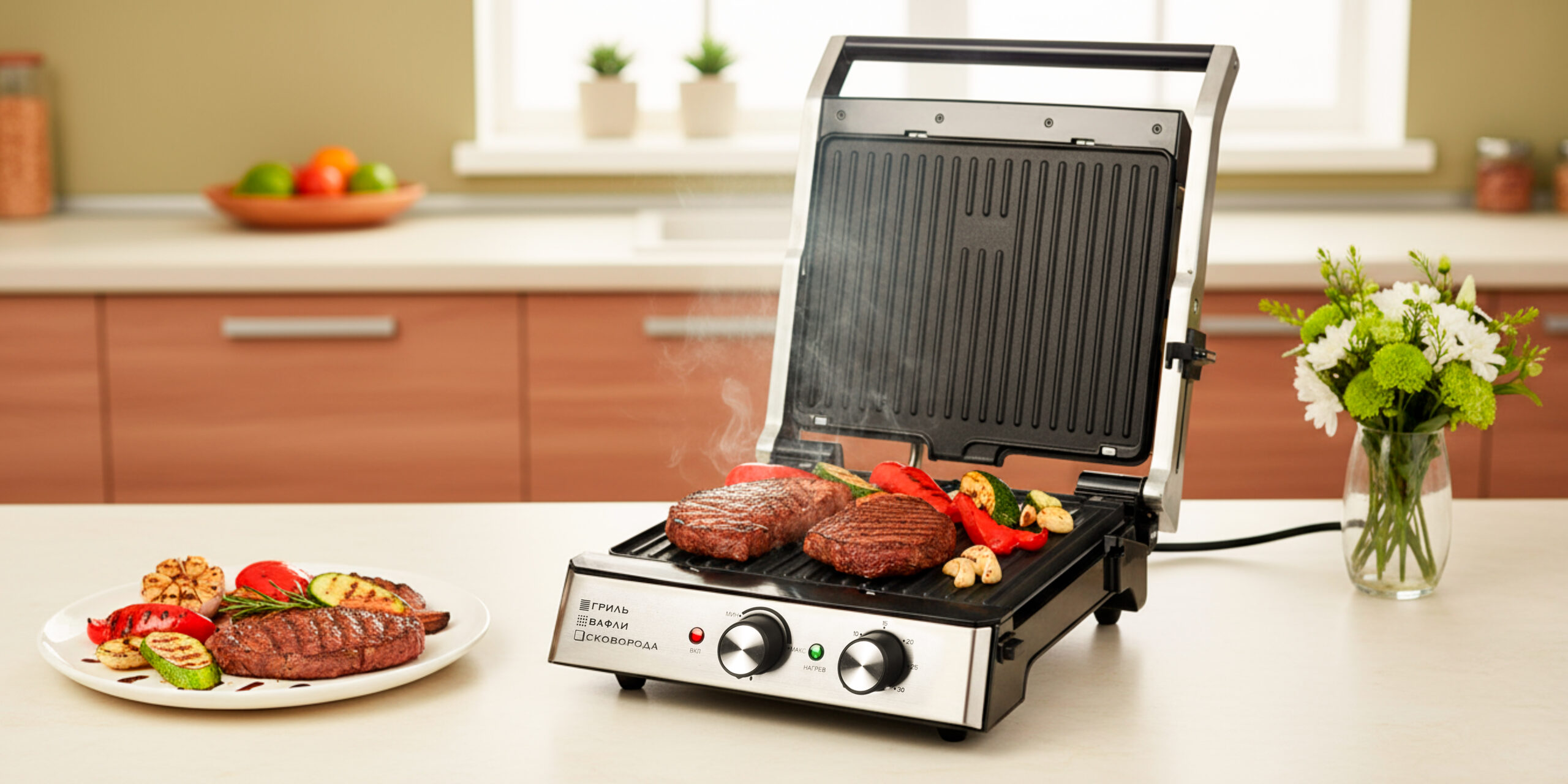 Такой прибор идеально подходит для приготовления мяса и рыбы. Он работает по принципу двойного нагрева: пластины с одинаковой силой прижимают «заготовки», обеспечивая равномерную прожарку. А лишний жир (вместе с «плохим» холестерином) стекает в специальный лоток. Так что блюдо получается полезным.