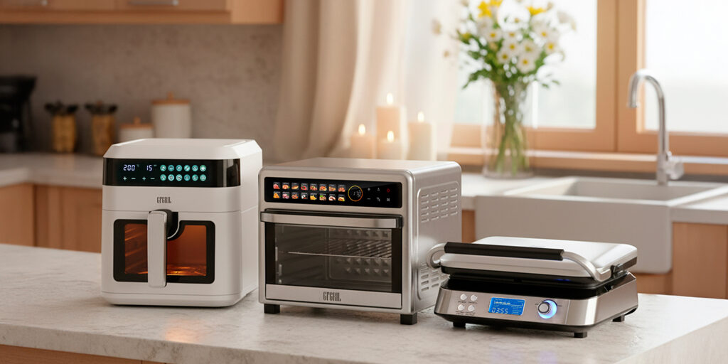 Сегодня GFGRIL — это самые разные виды техники: аэрогрили, электрогрили, кухонные роботы, мини-печи, микроволновки, электровафельницы и многое другое.